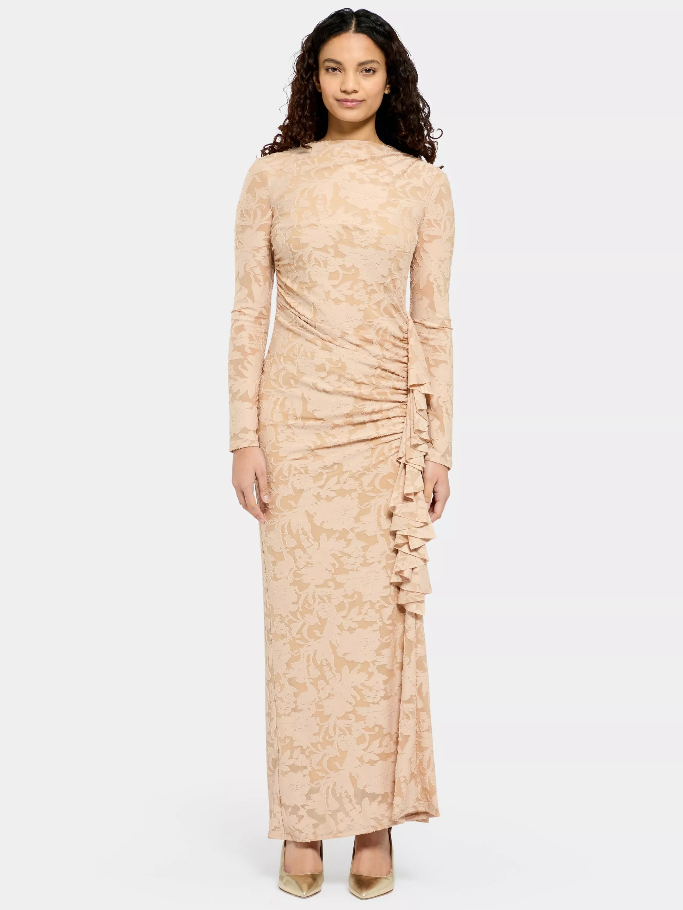 DASKA’s ruched maxi dress features a clever jacquard floral design and playful slash neckline. Long sleeves and a flattering slim fit invite you to move freely and feel remarkable at any evening occasion.