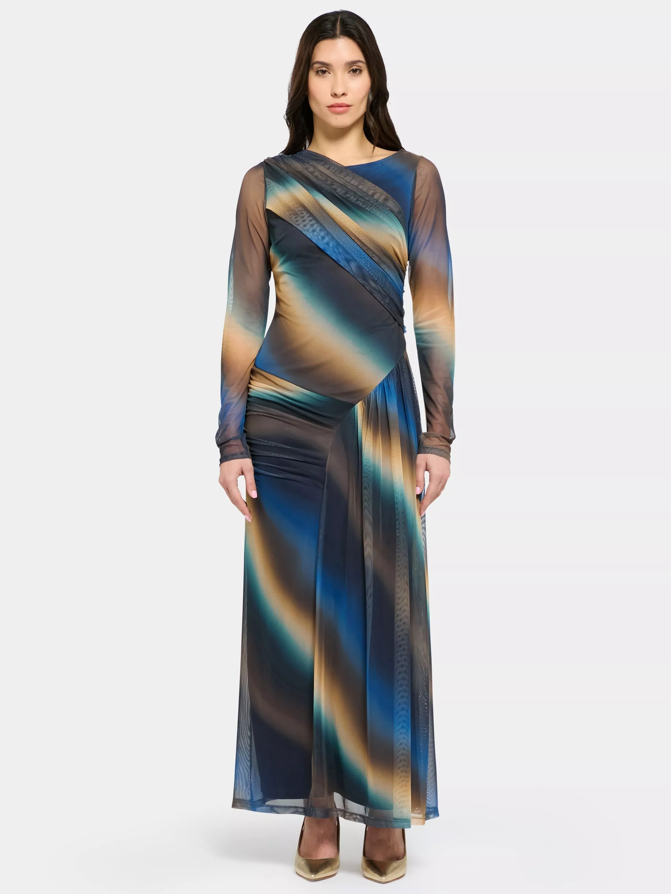 This asymmetric maxi dress combines a unique marble ombre pattern with clever ruching for a flattering silhouette, ensuring you stand out at any party or evening event. Enjoy comfort and movement with the soft, stretchy fit.