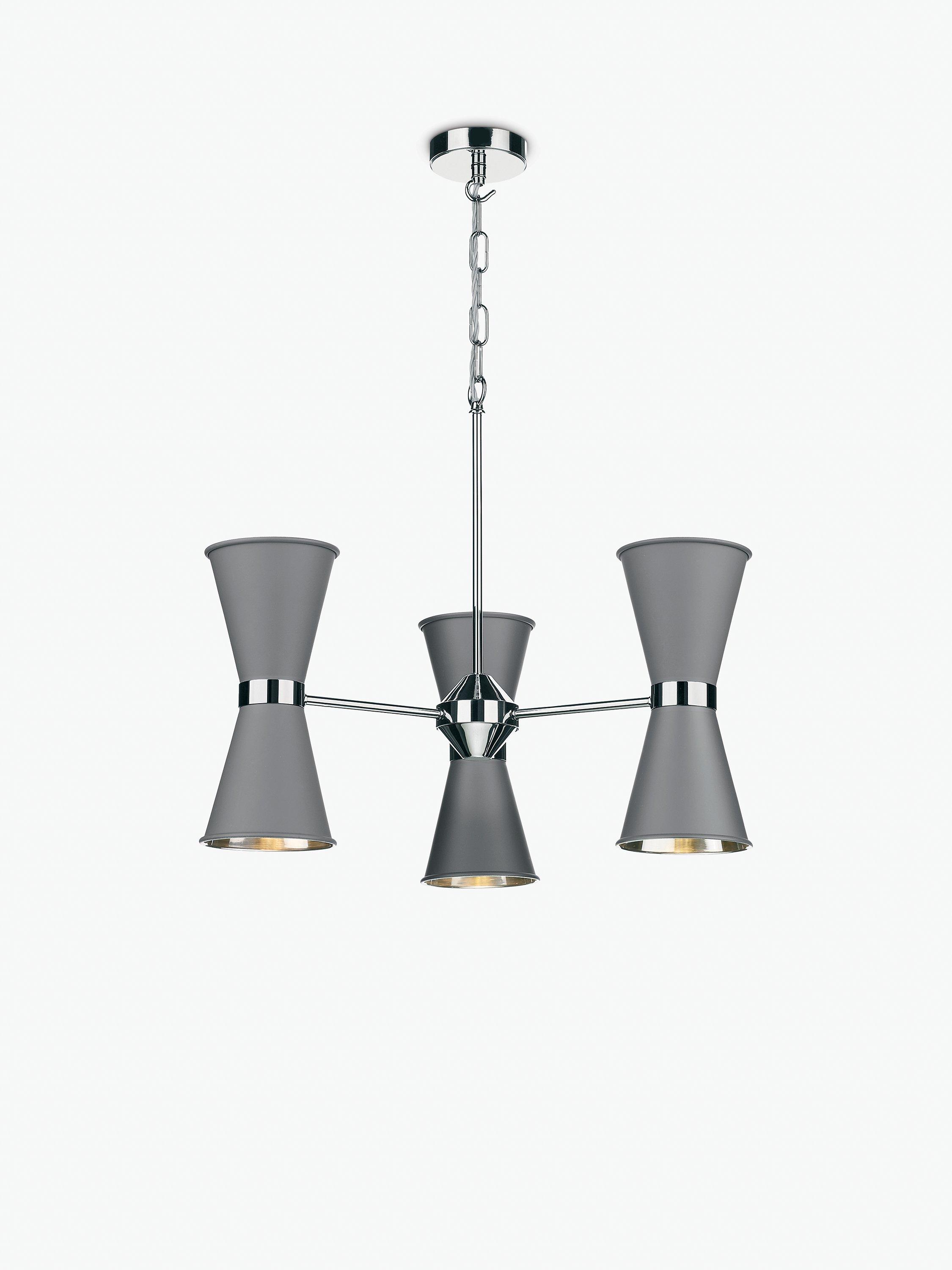 This opulent ceiling light has a solid brass frame and features three shades that each hold two lights. It will fill your space with light, and each shade is sprayed by hand in a contrast, matt paint finish. The metal hardware is finished in either buttery brass or polished chrome, so you can pick a style that best suits your interior. Plus, it's suspended from a height-adjustable cable.
