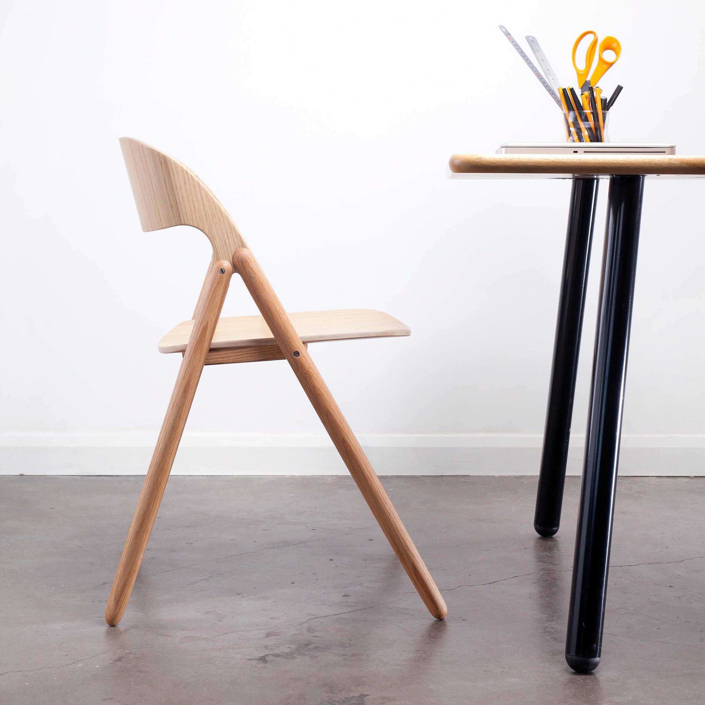 Inspired by the constantly adapting nature of modern workshops, David Irwin's lightweight Narin folding chair is easy to collapse and move around, and can be stored in condensed stacks that occupy minimal space.