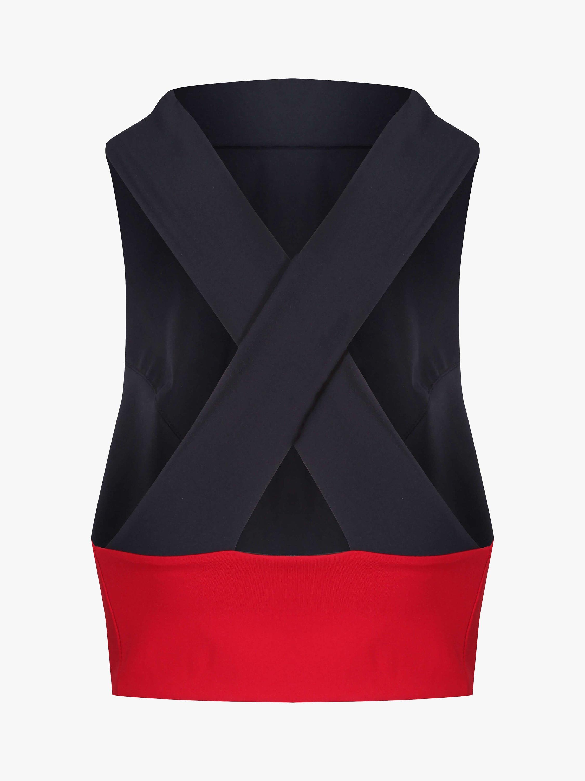 This versatile piece can be worn either of two ways, showcasing the striking red front and back detail or as a classic all-black silhouette. Double-lined and crafted using a premium quality fabric, made from a clever combination, comprised of a high elastane content and 100% regenerated nylon yarn, this swim top will provide superior lift and hold, sculpting and smoothing you in the areas you want it to most.