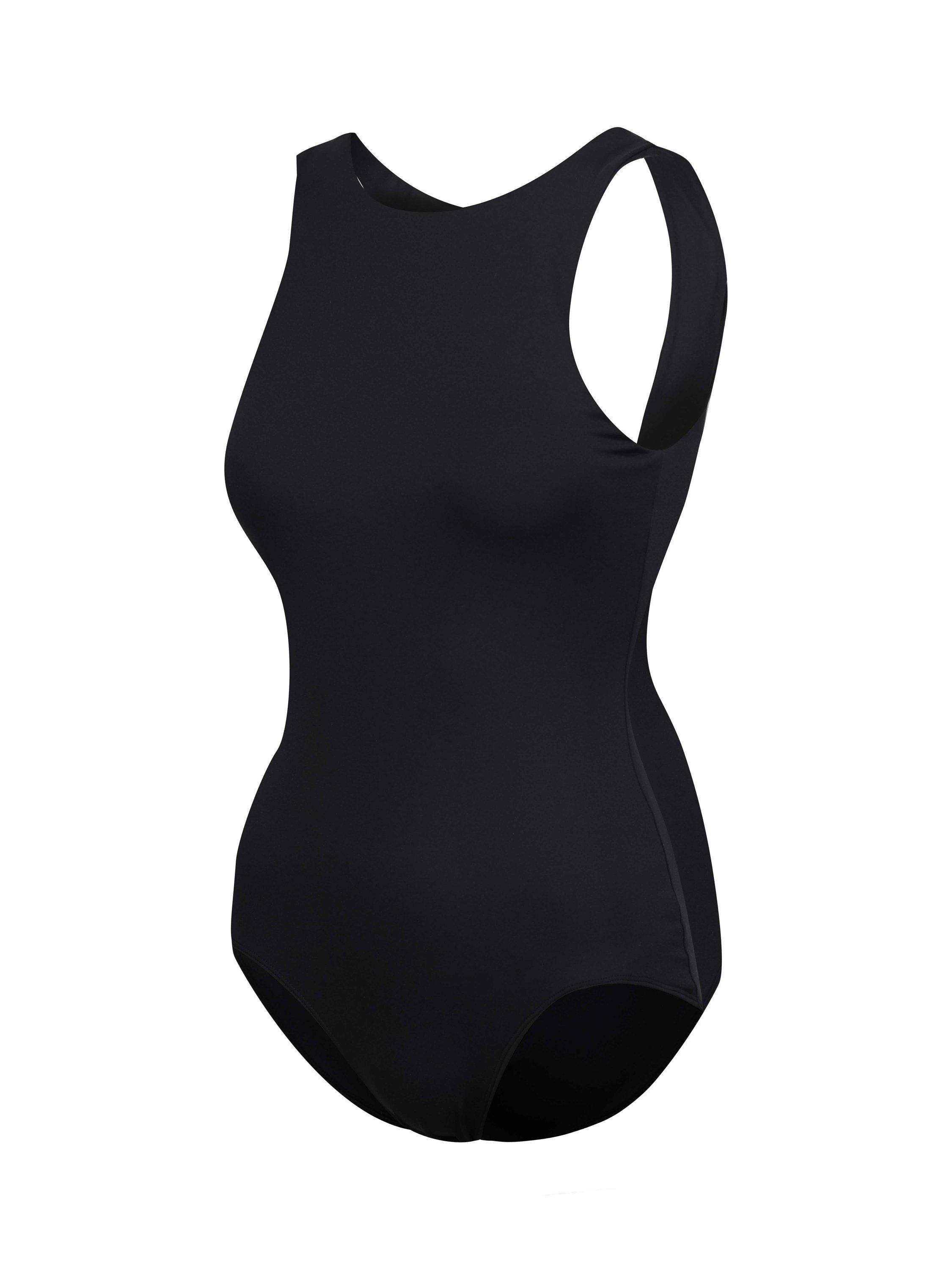 Featuring a flattering high, racer cut neckline and elegant low squared back, this swimsuit will sculpt, shape and smooth the body.