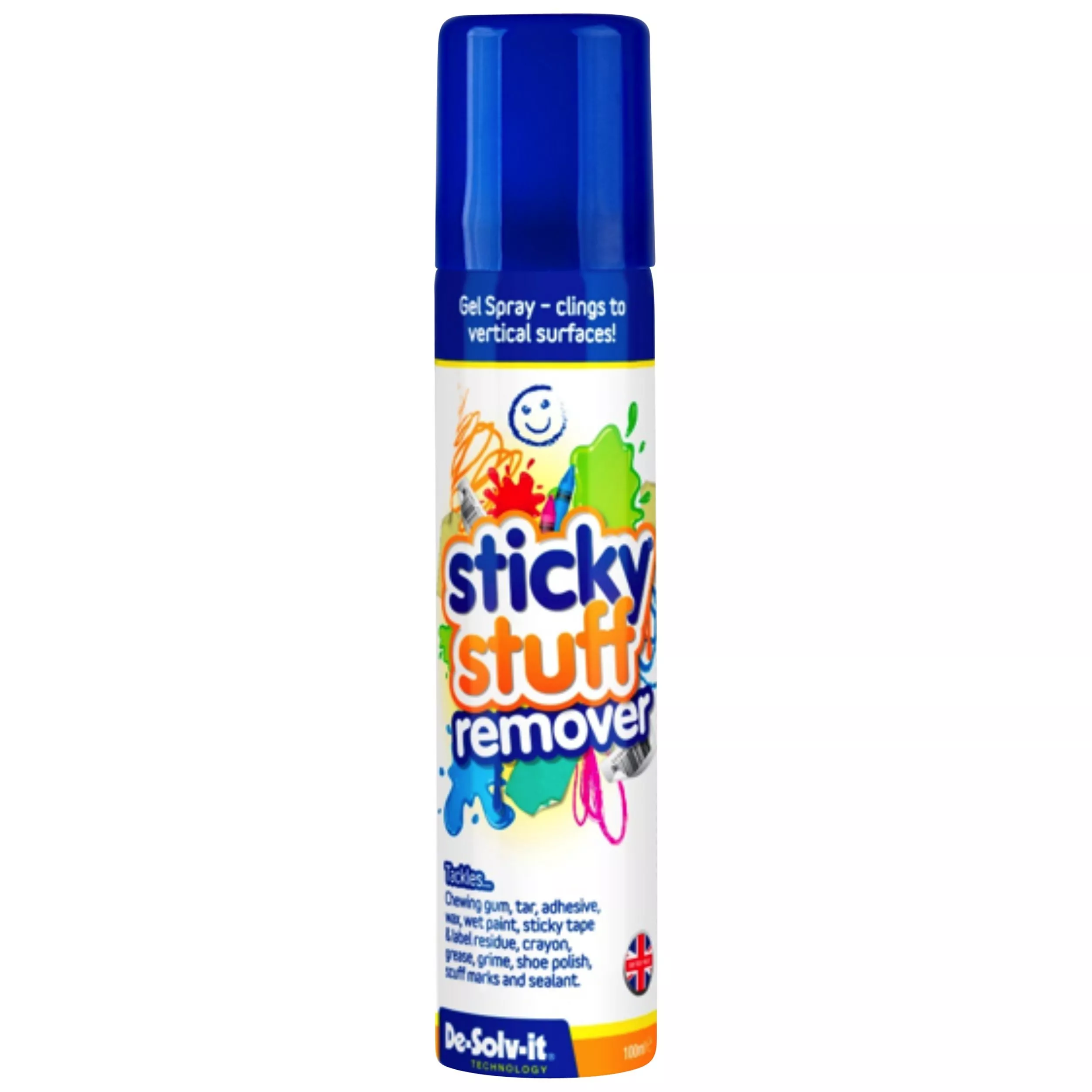 Tackles stains such as chewing gum, adhesive, sticky tape and label residue, tar, glue, grease, grime, shoe polish, scuff marks, wax, wet paint and crayon.