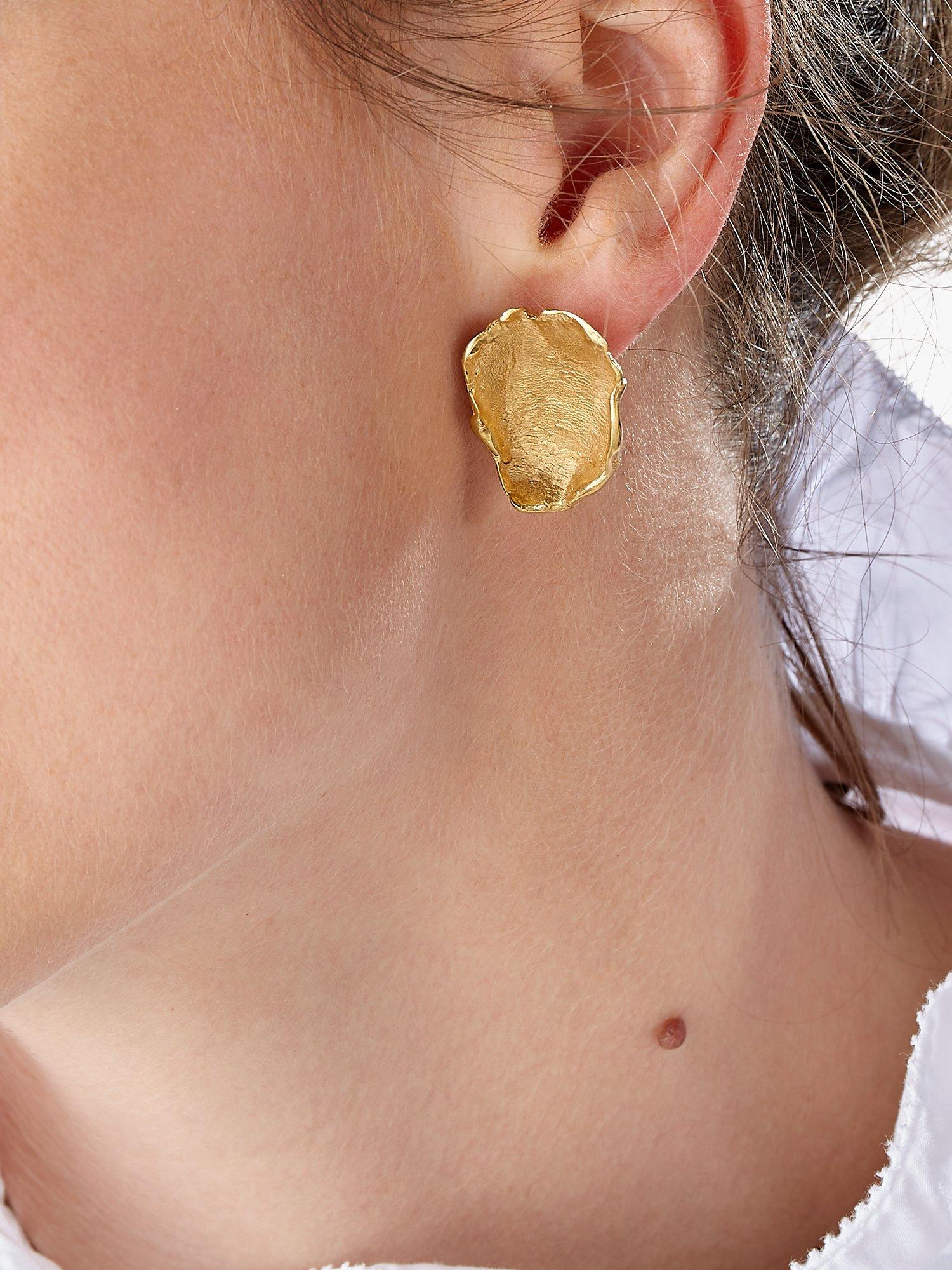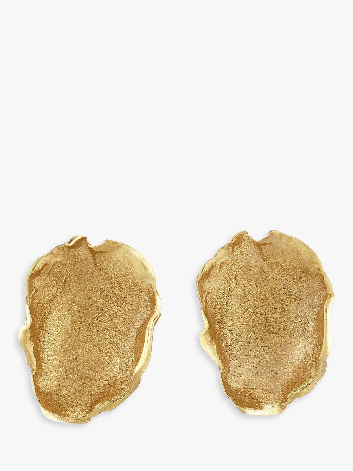 These stud earrings are slightly concave with a textured surface and polished edges that curl inwards, like a breaking wave. Handmade in Deborah Blyth's London studio, through the process of lost wax casting.