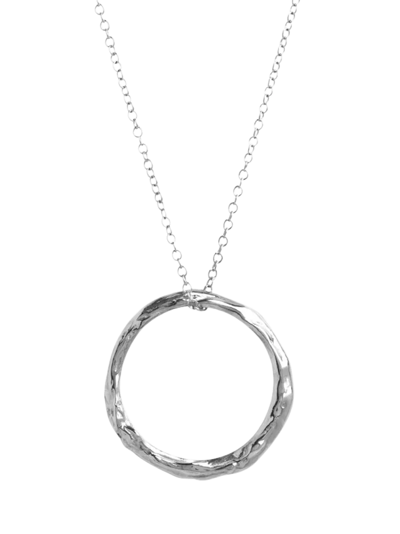 Designed to make accessorising effortless, this textured open circle pendant necklace from Deborah Blyth breathes new life into jewellery collections.