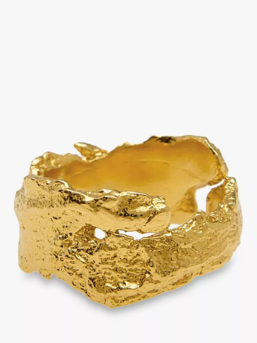 Cast from of a piece of bark from a much loved old plum tree, this ring is a real statement piece. This textured ring is very comfortable and adjustable to fit. It can be worn anyway round and suits both men and women.