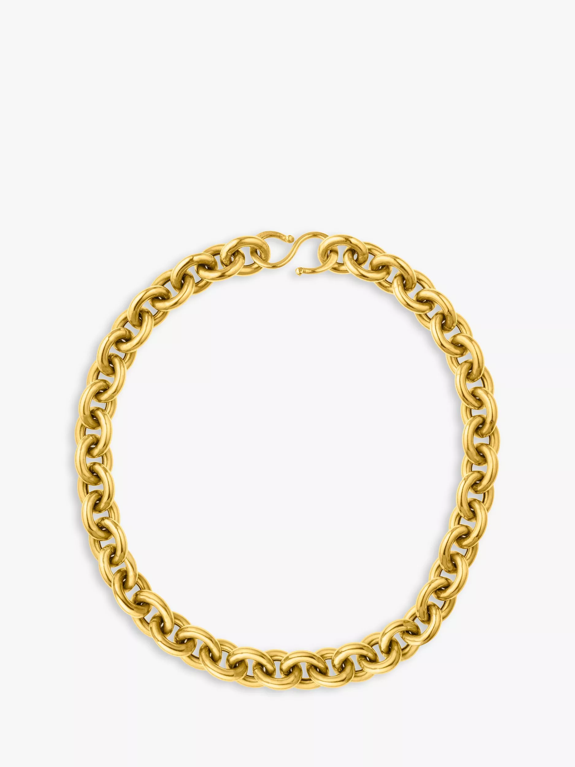 Bold and chic, this gloriously stylish chain necklace makes a real statement and will soon become an indispensable go-to piece. It fastens with an 'S' shaped clasp and although bold, the chain is hollow so is a very comfortable weight. The surface of the chain is very slightly irregular for that Deborah Blyth look.
