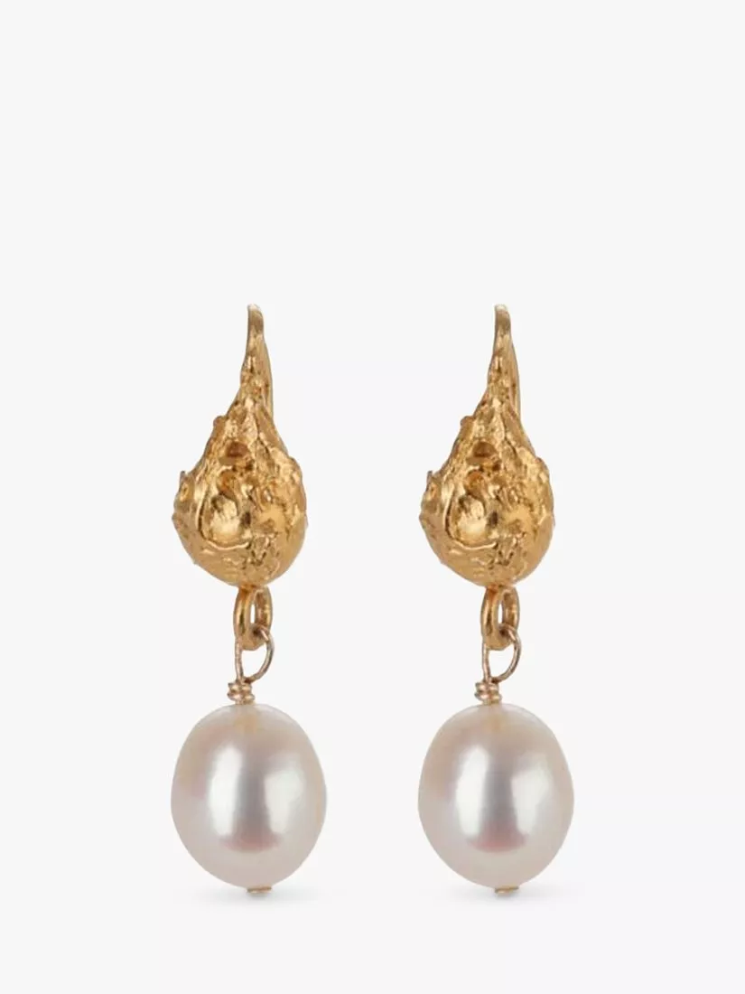 With all the texture Deborah Blyth Jewellery is known for, these stunning earrings feature an organic textured drop nugget design. Hanging from the nuggets are beautiful, lustrous white freshwater pearls. The combination of textures, mixing the organic nuggets with the classic smooth pearls makes these earrings chic and interesting.
