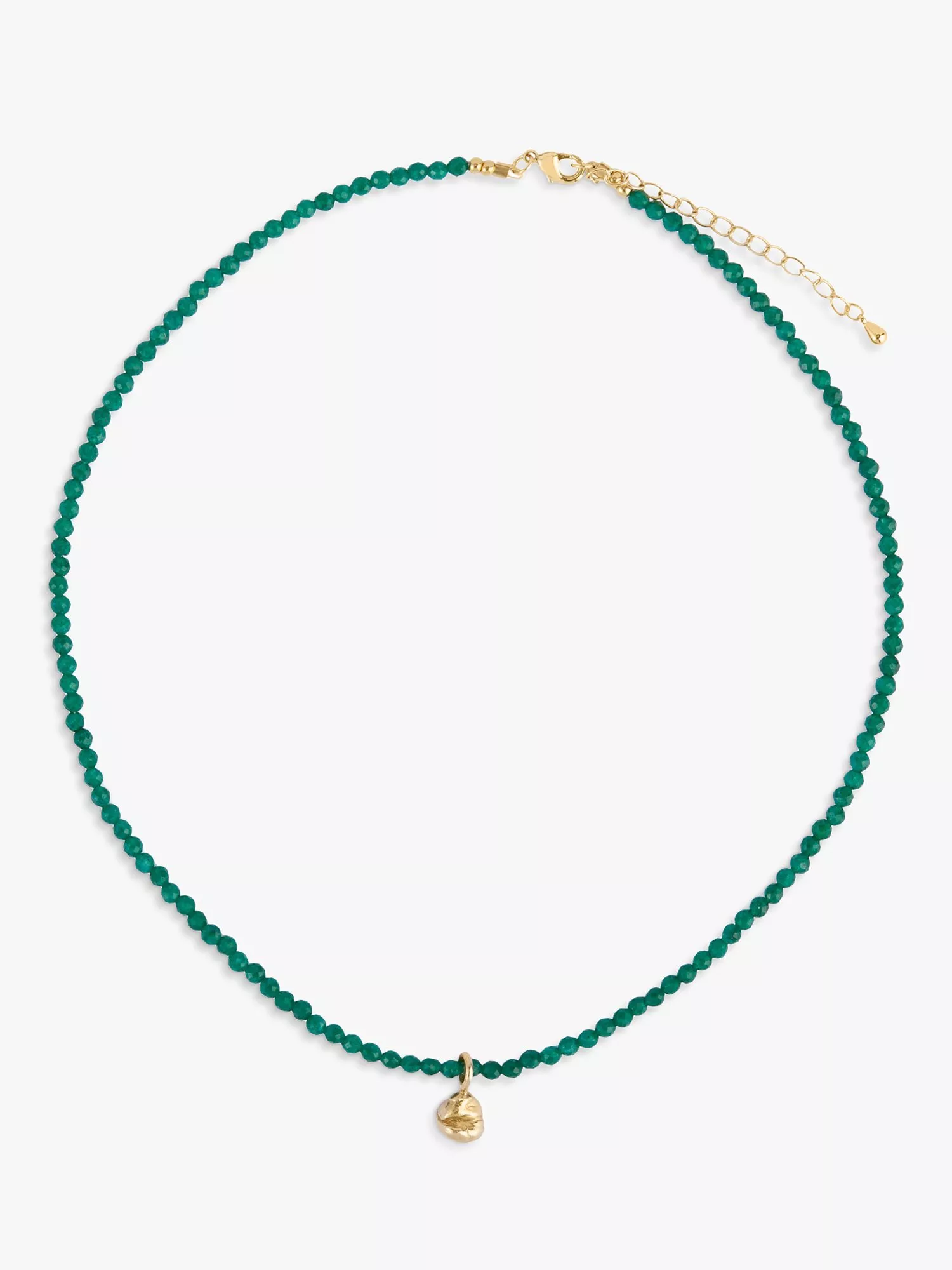 Deborah BlythGreen Agate Beaded Nugget Charm Necklace, Gold
