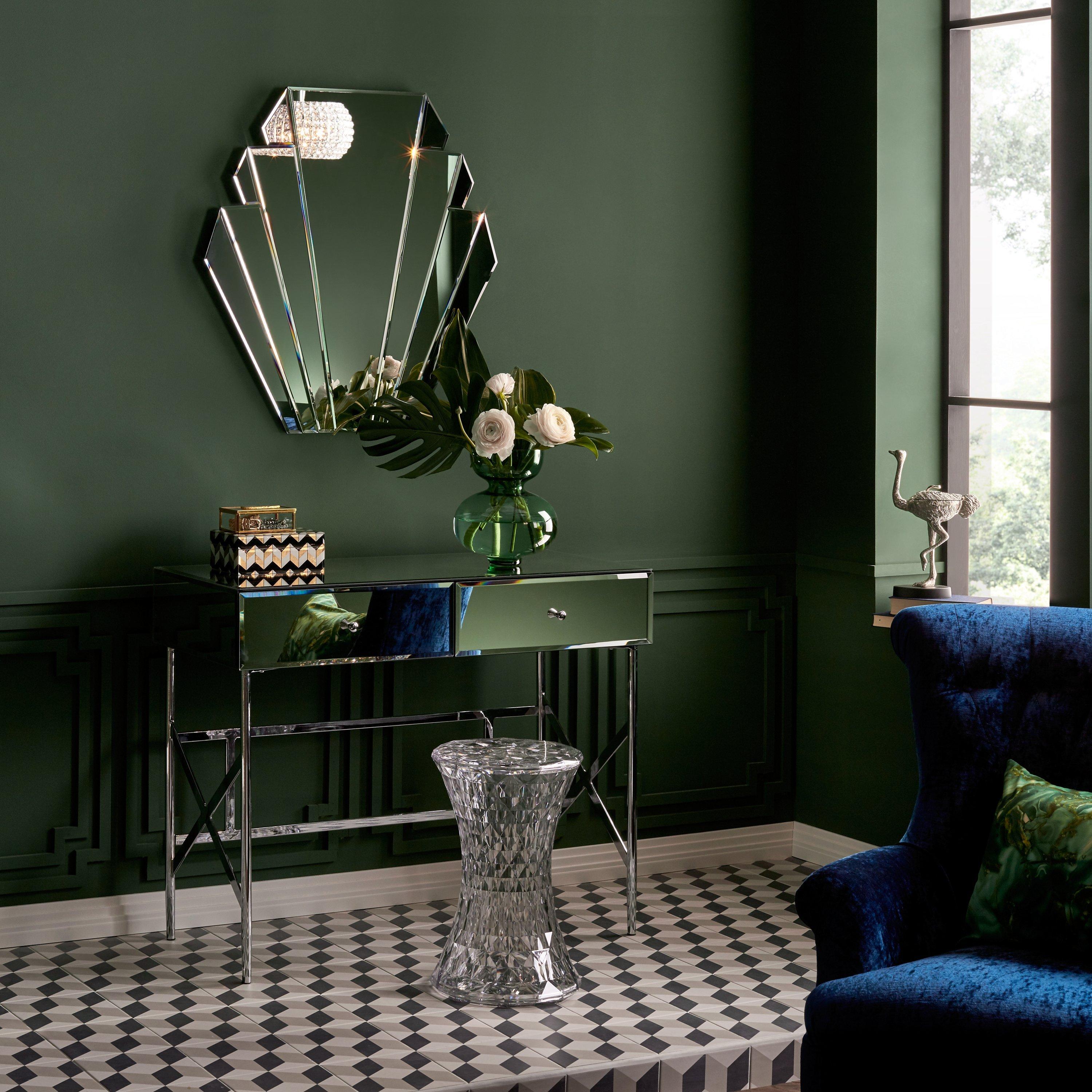 This stunning Deco mirror is ideal for sitting over your mantelpiece. It's a striking design with a flared appearance.