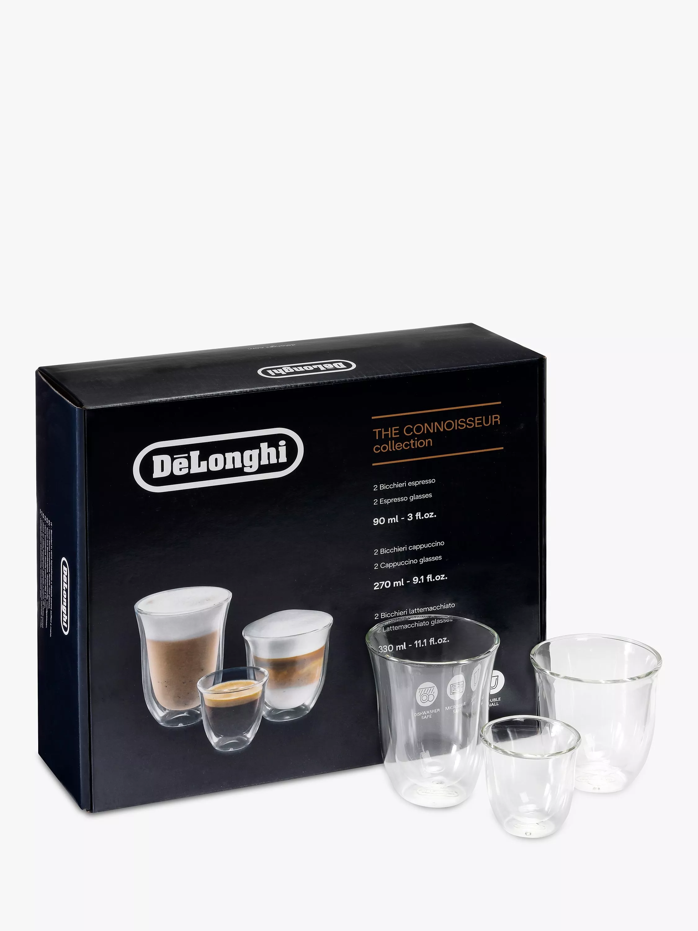 The Connoisseur Glass Gift collection features two each of espresso, cappuccino and latte glasses. Made from hand-blown borosilicate glass, these beautiful glasses keep your drinks hot for longer, whilst displaying your Barista quality results beautifully.