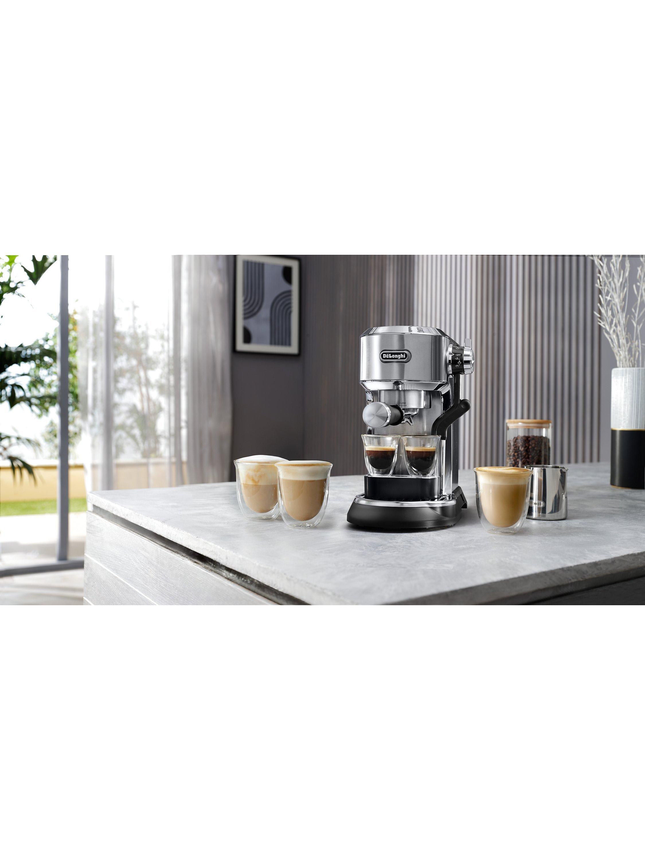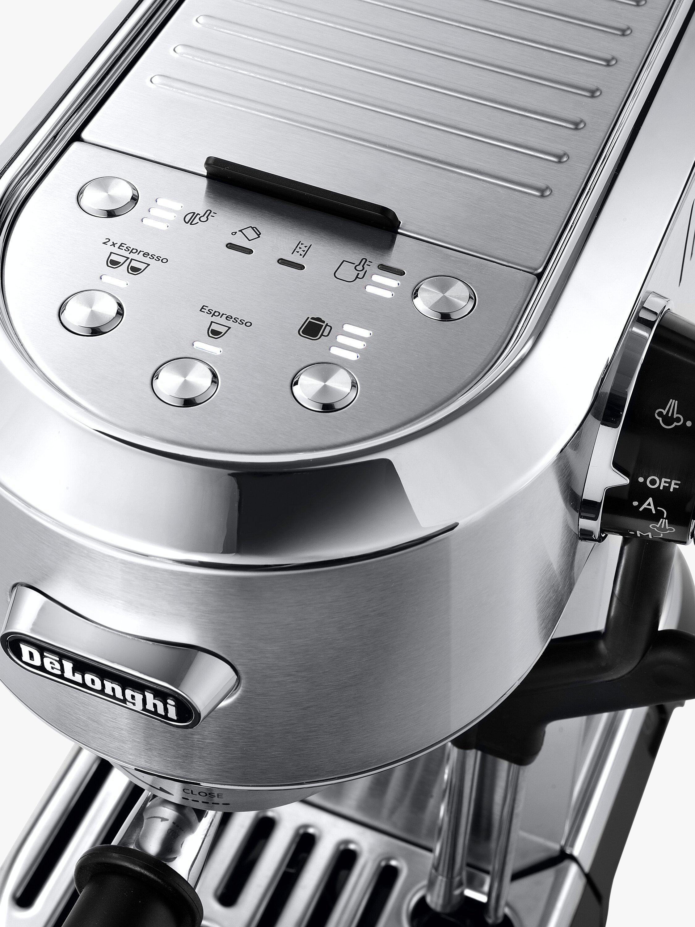 Enjoy superior coffee quality at home with this compact manual coffee maker, the De'Longhi Dedica Maestro Plus. Craft your own barista-style drinks thanks to the Auto LatteArt milk frother system, with three infusion temperature profiles to achieve the perfect results to suit your tastes. This premium machine features a new user interface, with more space for user settings at the touch of a button.