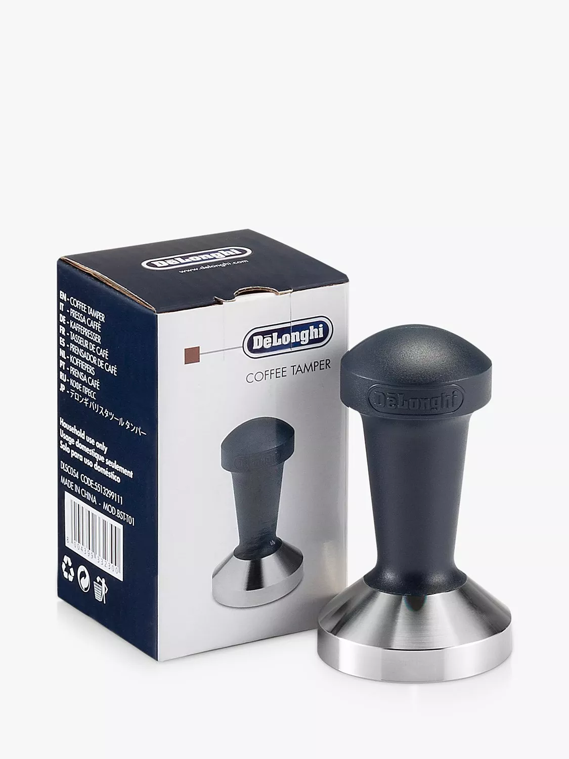 Tamp coffee grounds evenly for a quality espresso with this calibrated coffee tamper. Tamping is the action of pressing the coffee grounds into a pod of coffee in the filter cup prior to extraction. When you learn to reproduce the right pressure you will get the best possible espresso everytime. The best results are obtained using De'Longhi Calibrated coffee tamper to give the right pressure to ground coffee into the filter. Stainless steel base with natural wood handle 51 mm diameter Suitable for pump espresso machines.