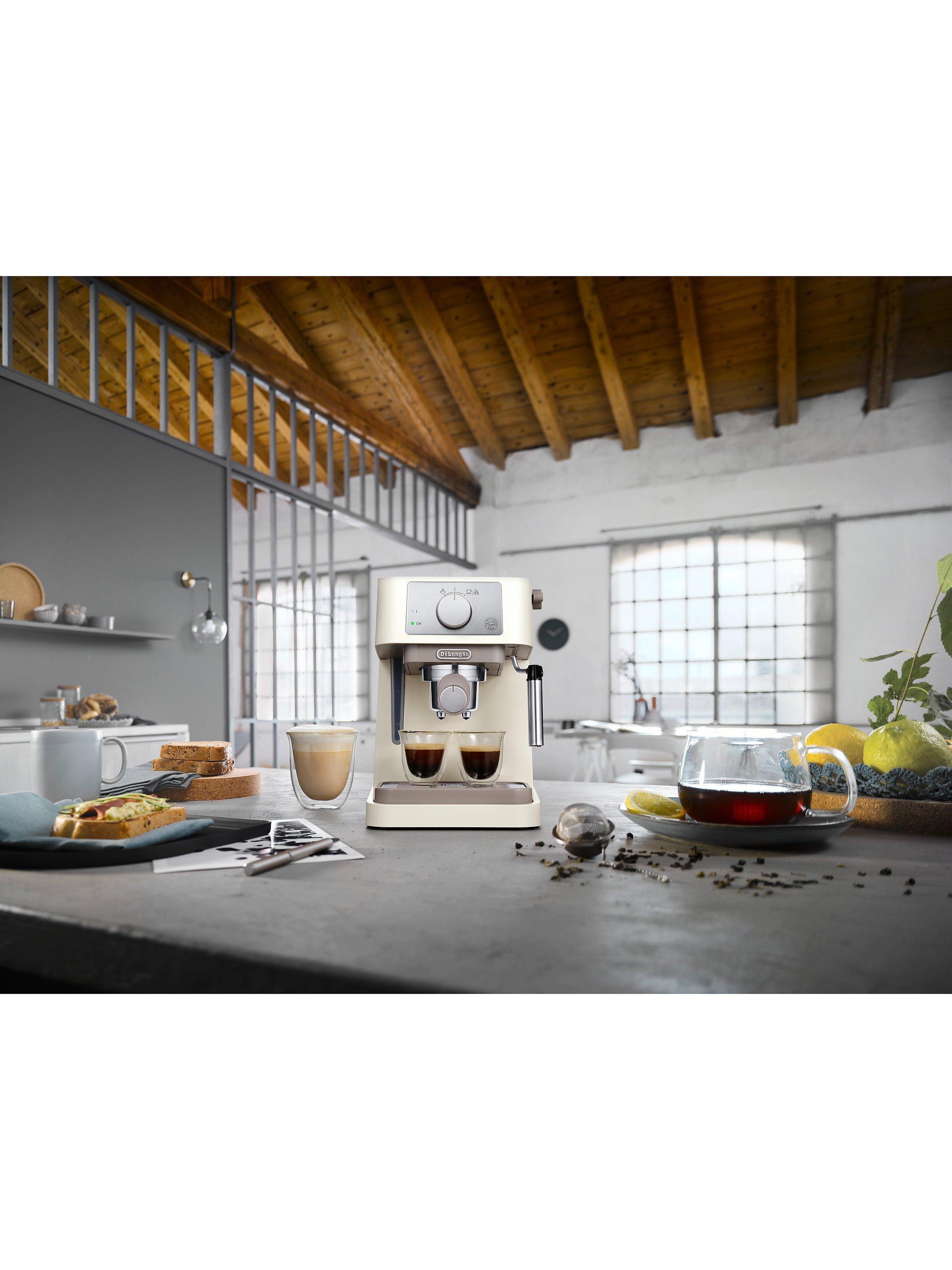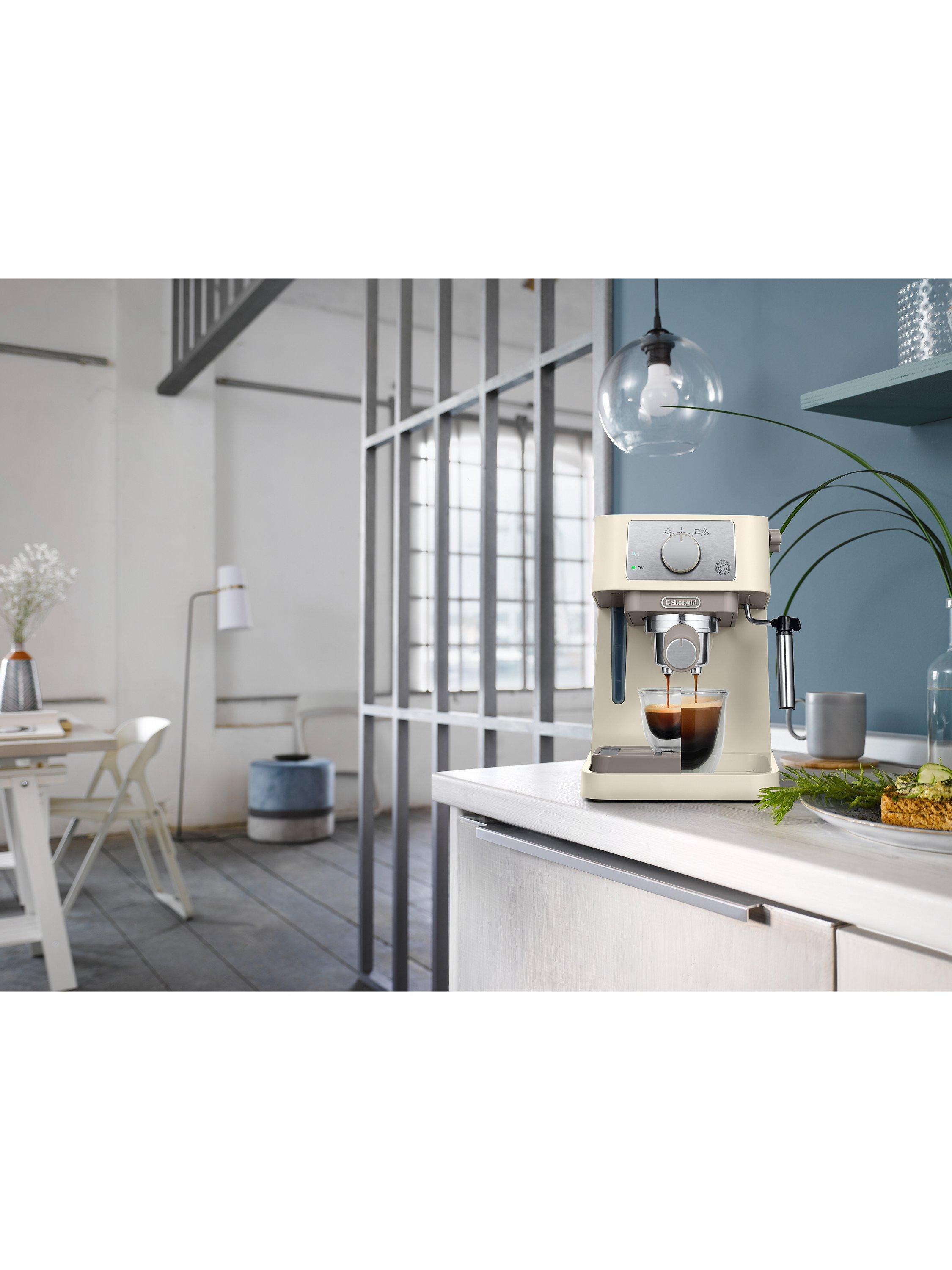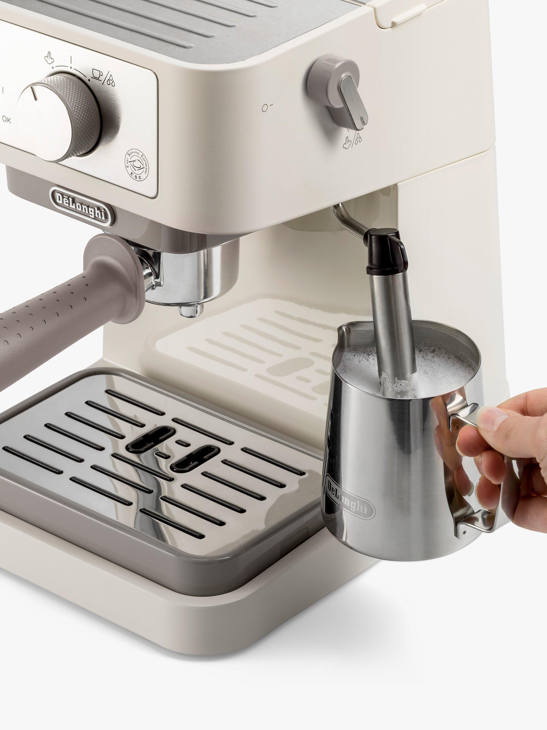 The easy to use De'Longhi EC260.bk Stilosa espresso coffee machine has been designed to work with both ground coffee, and ESE pods to provide tasty espressos, just the way you like them. This compact device includes a milk frother for your cappuccinos, a handy removable water tank, and an easy to clean drip tray.