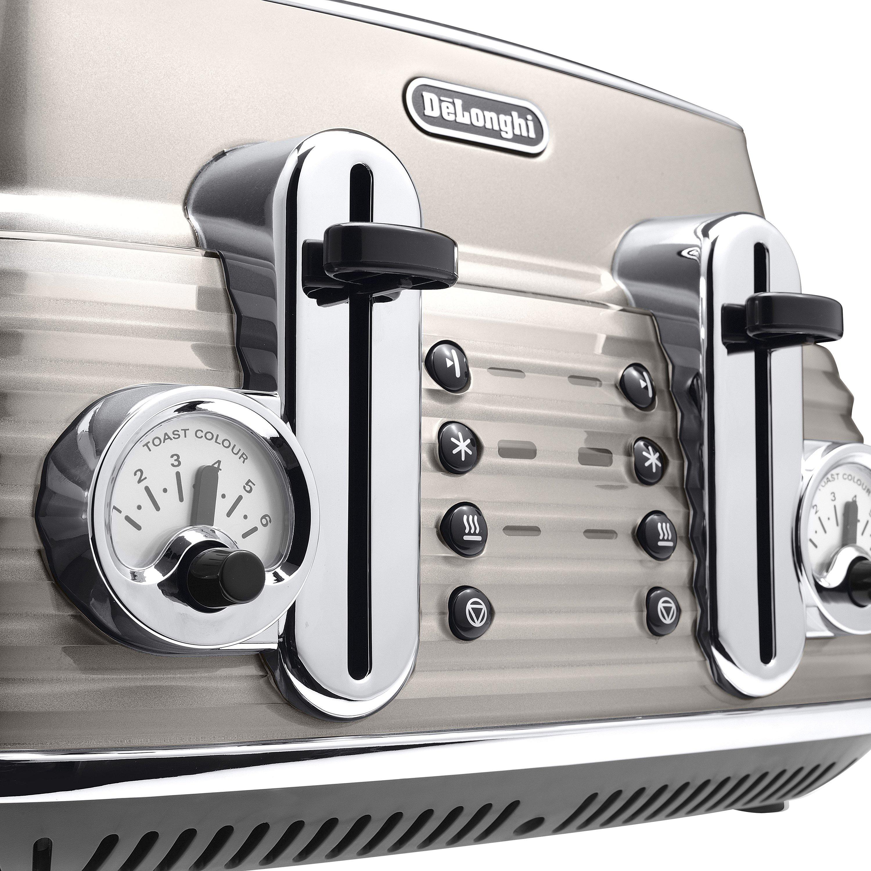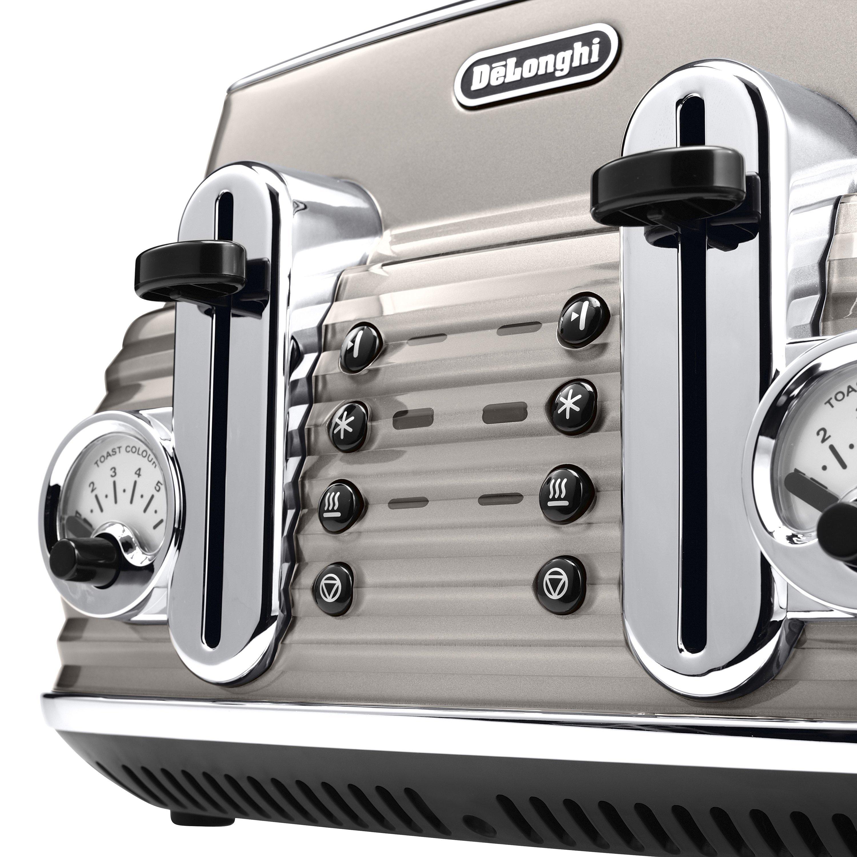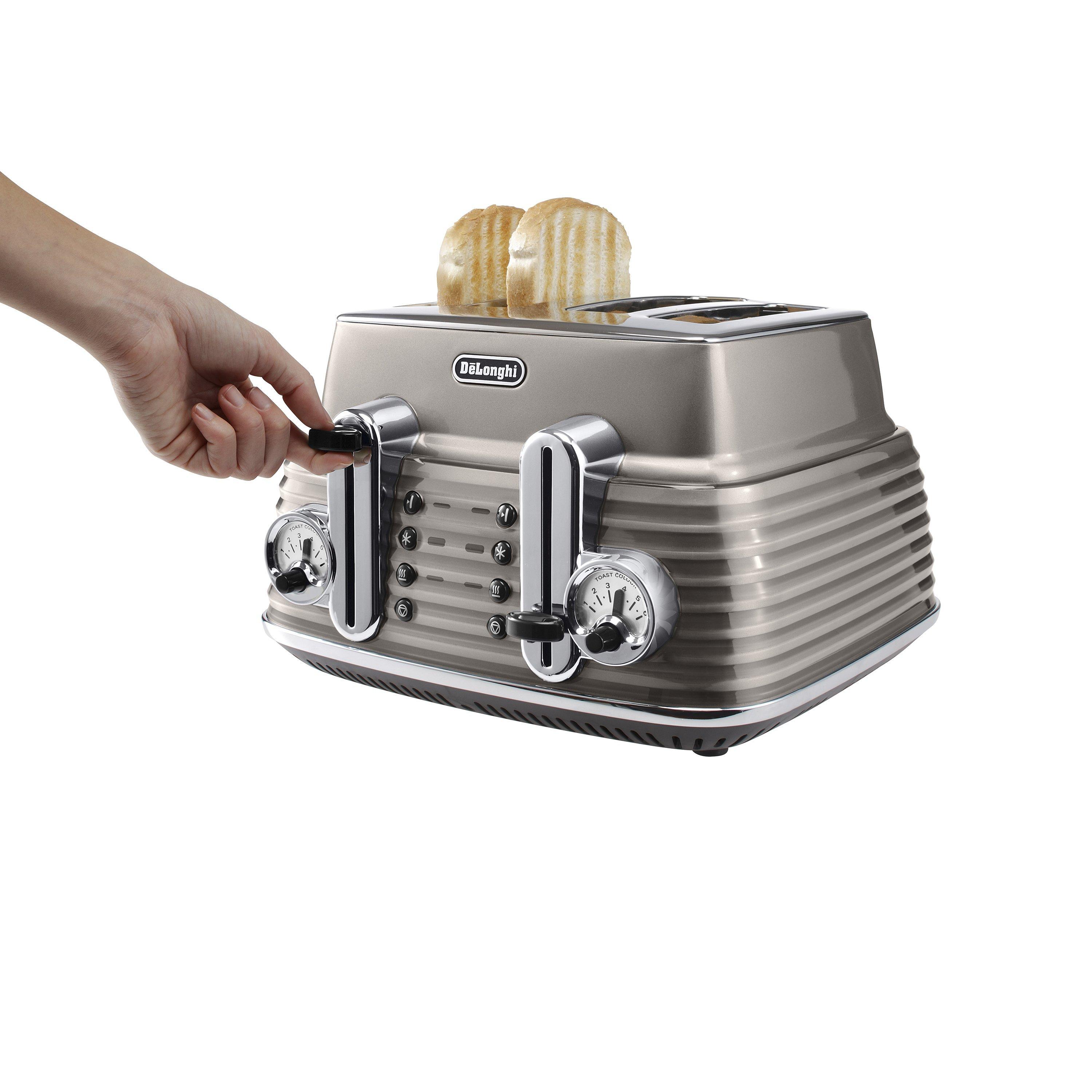 The De'Longhi 4-slice Scultura toaster cleverly combines futuristic and retro design elements to make a truly iconic toaster.