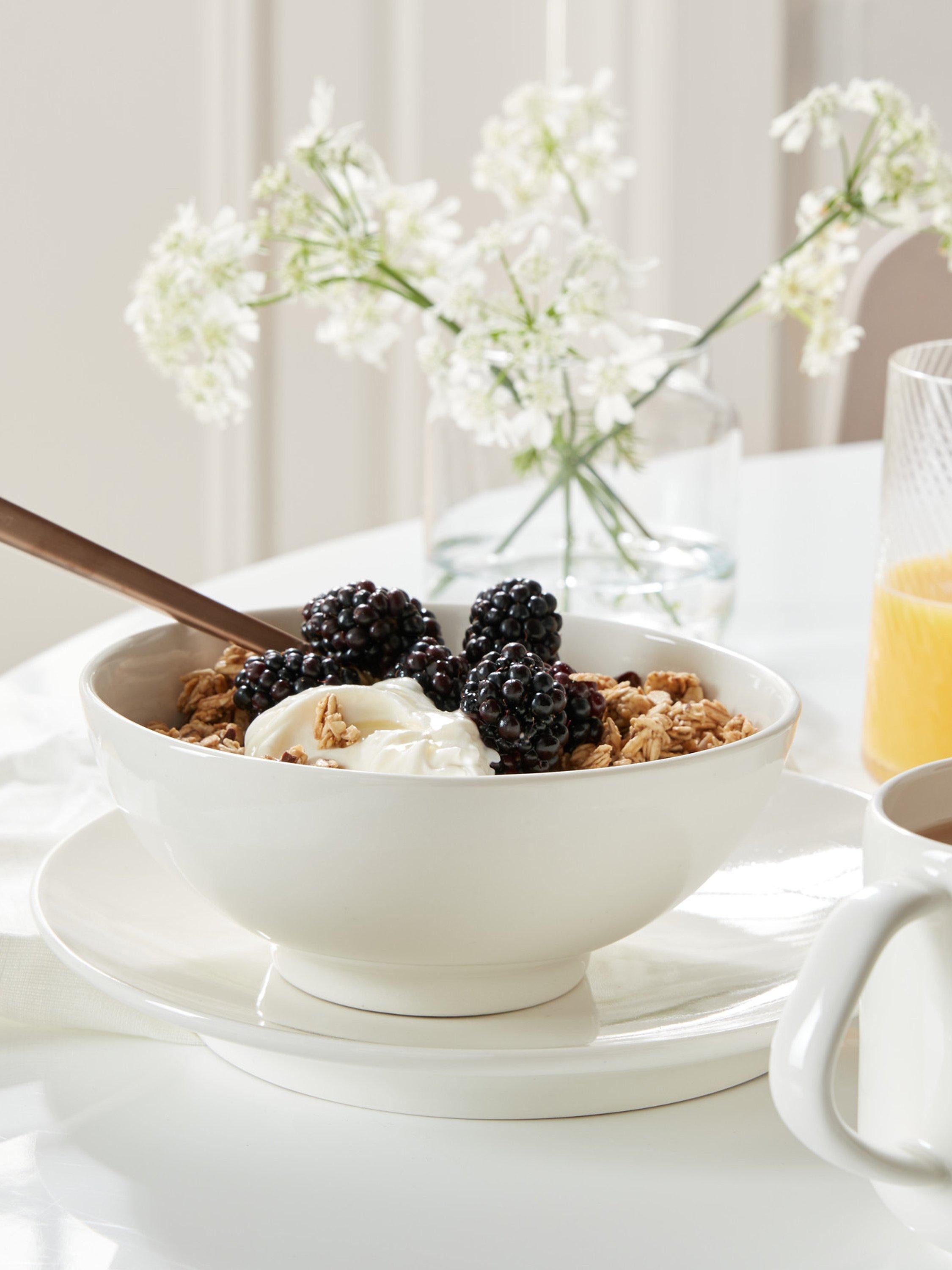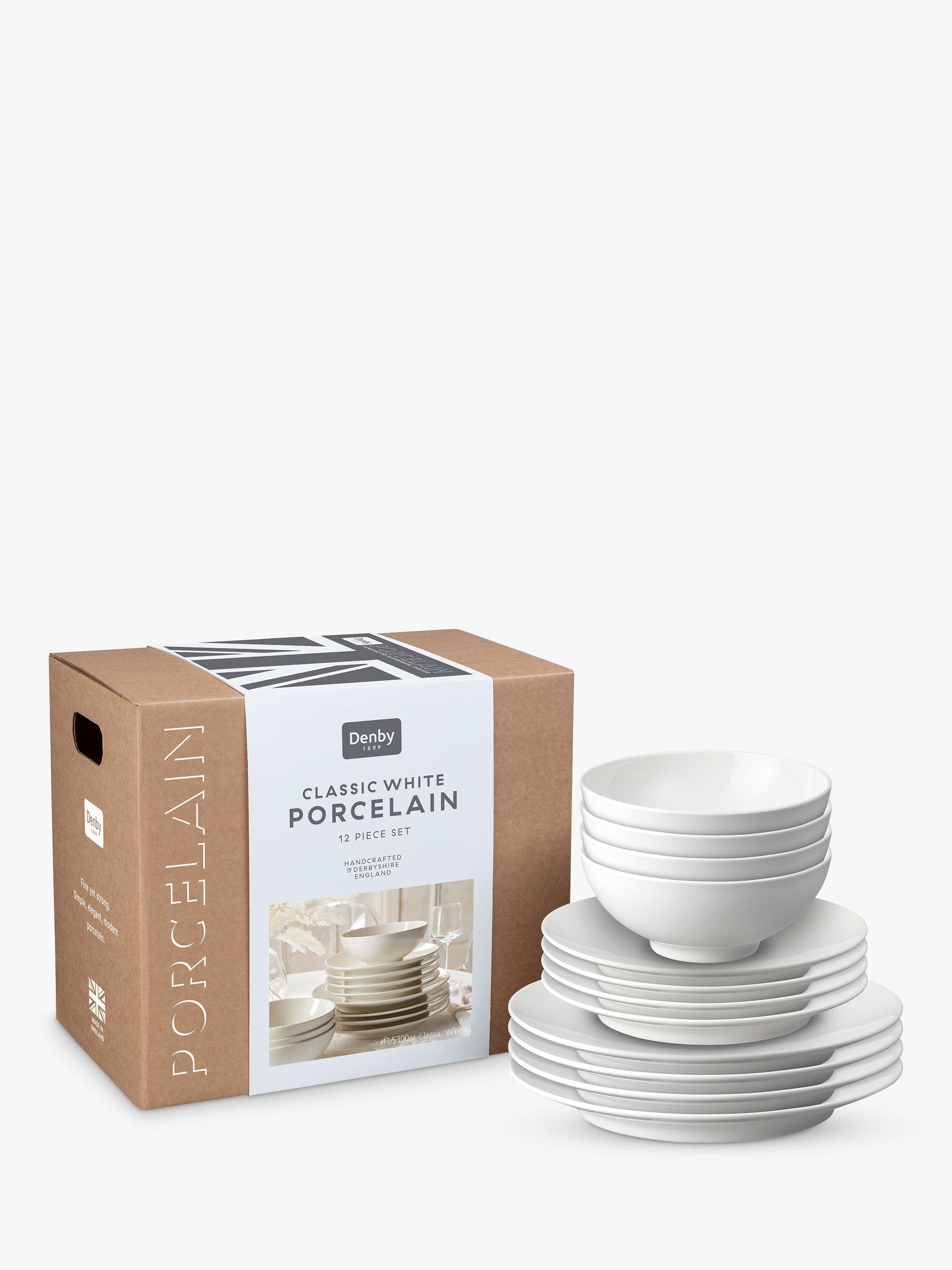 Simple, elegant and modern, the Classic White collection from Denby is designed for both everyday use as well as special occasions. The versatile pieces layer beautifully with other Denby porcelain ranges in white, plain or patterned. This dinnerware set includes four dinner plates, four medium-sized side plates and four cereal bowls.