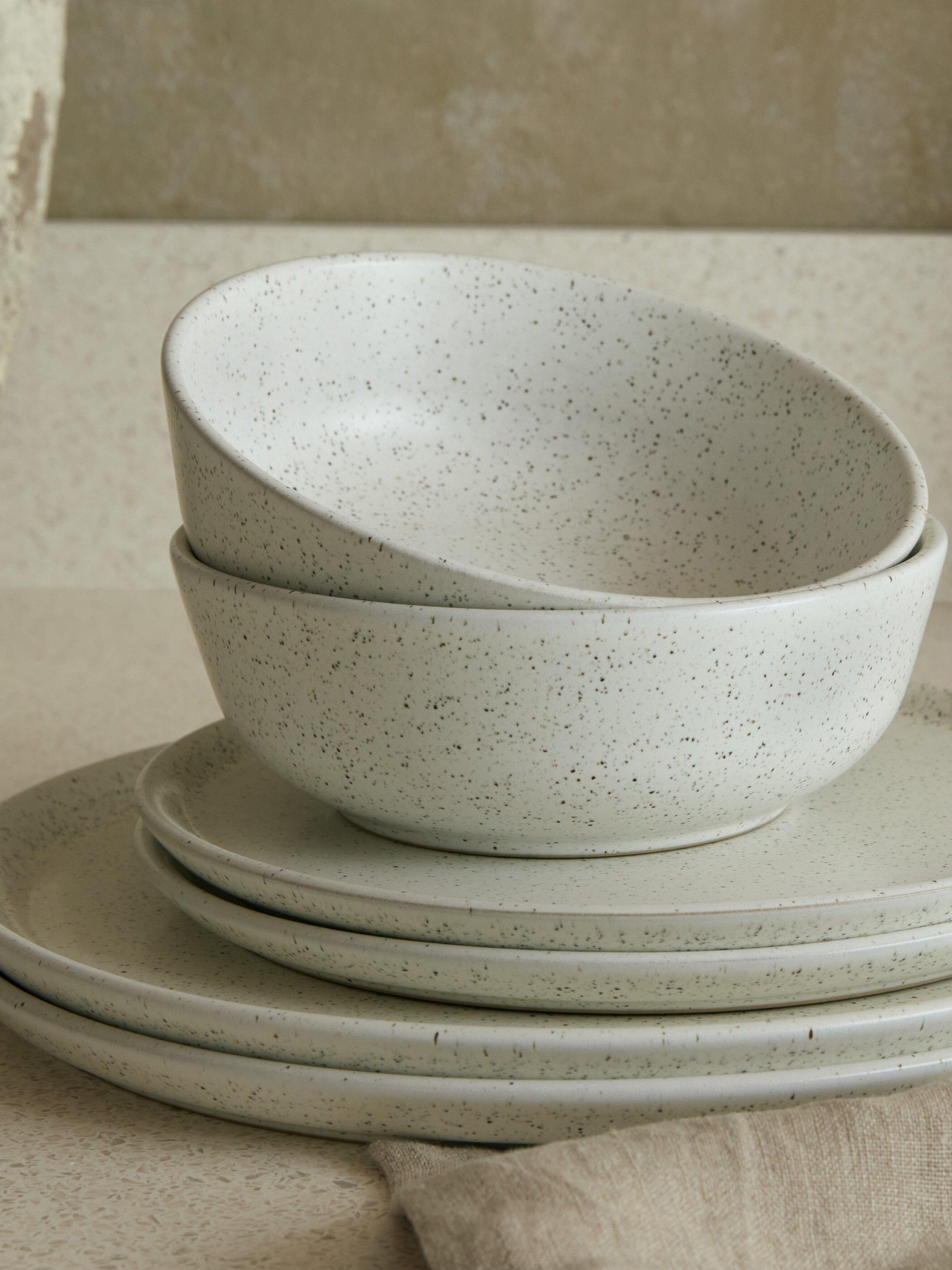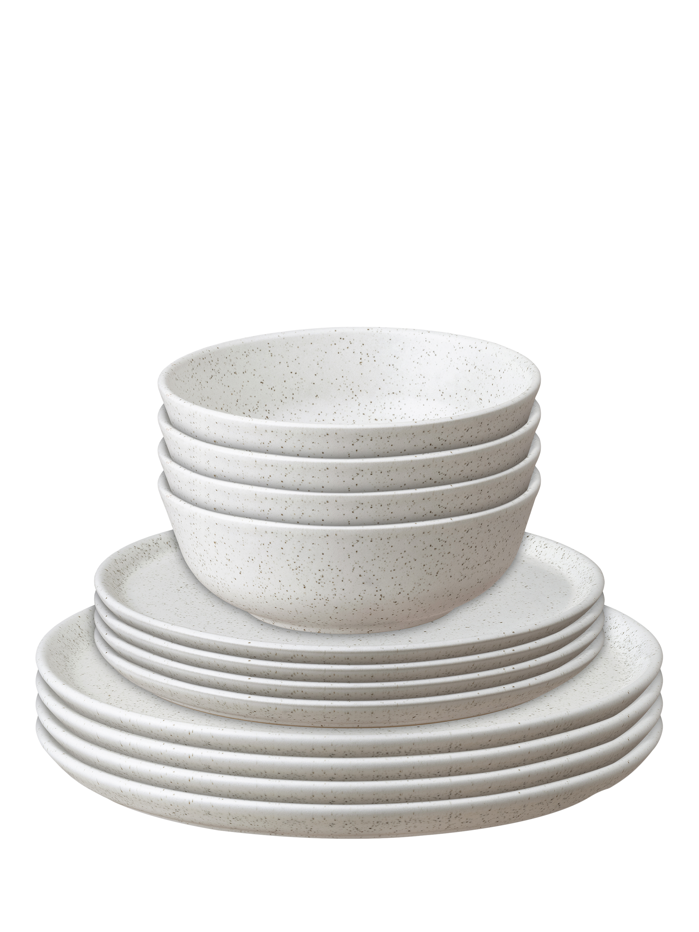 This 12-piece dining set contains four Dinner Plates, four Medium Plates and four Cereal Bowls to see you through the day from breakfast to evening meals. All items have a finer, lighter profile and subtle curves, making them beautiful to use, ideal for modern portioning and easier to store.