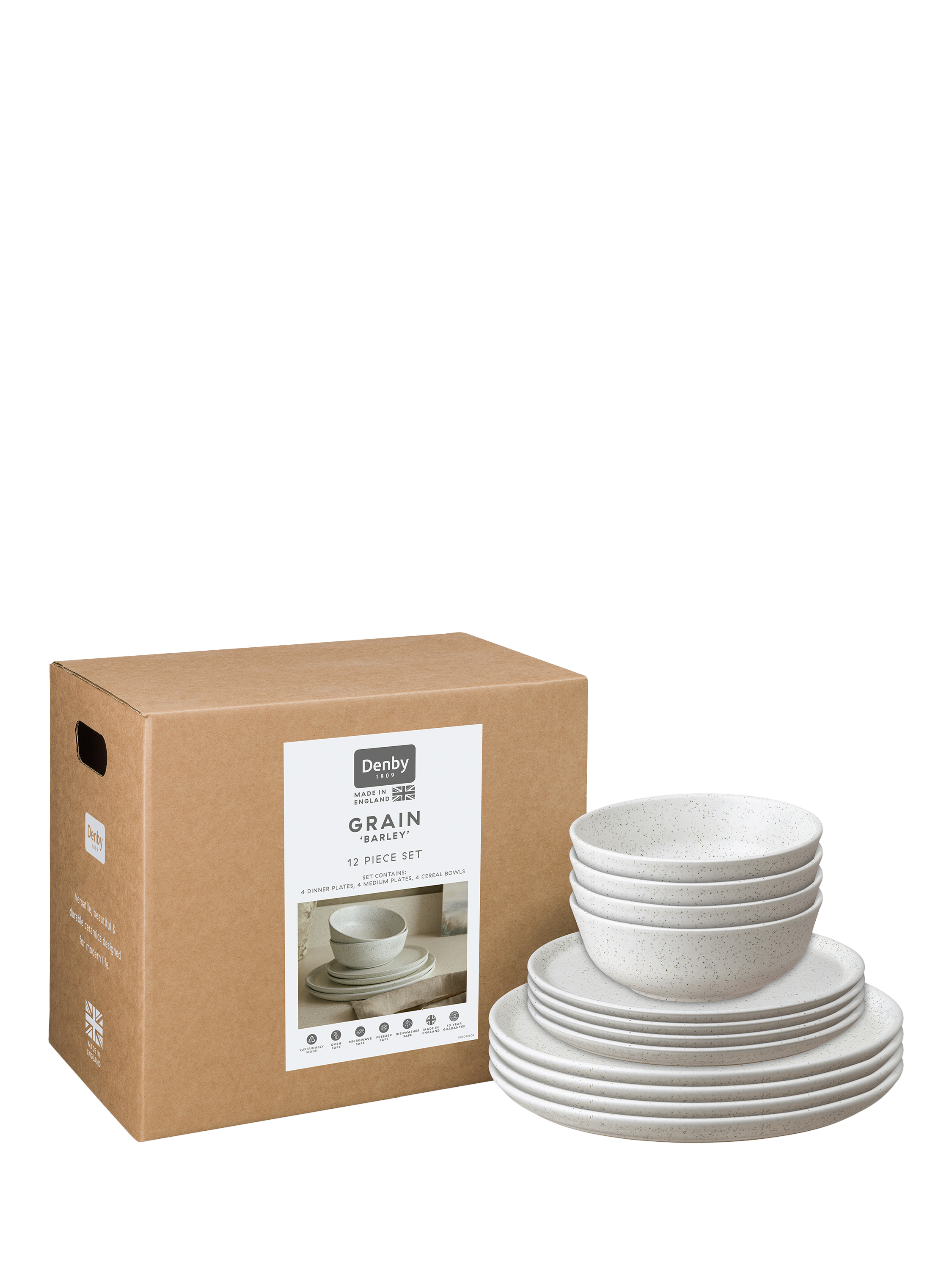 DenbyGrain Stoneware Dinnerware Set, 12 Piece, Barley