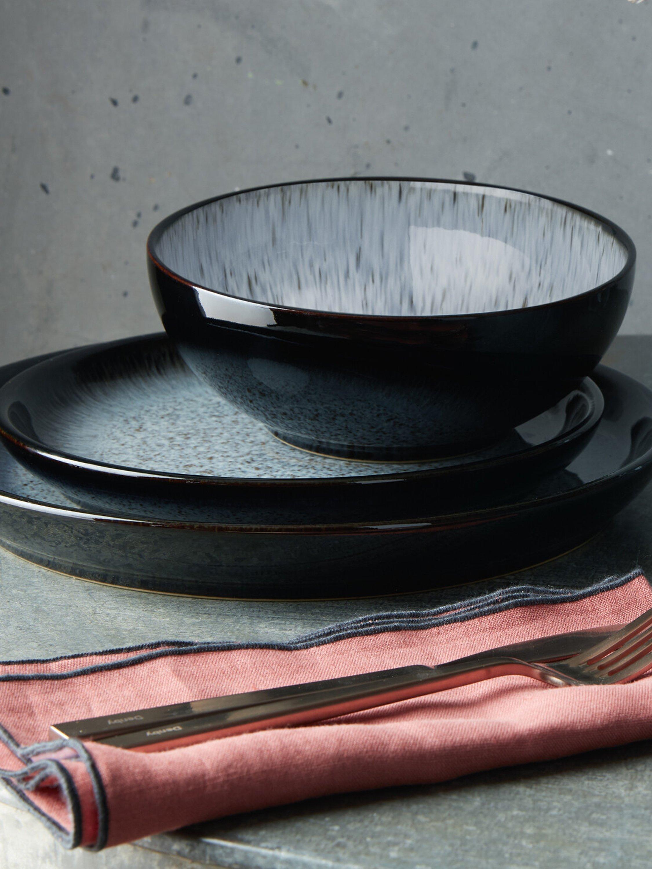 Denby Halo's distinctive two-tone effect is created by contrasting glazes, layering a beautiful deep dark colour in combination with Denby's unique speckled glaze effect.