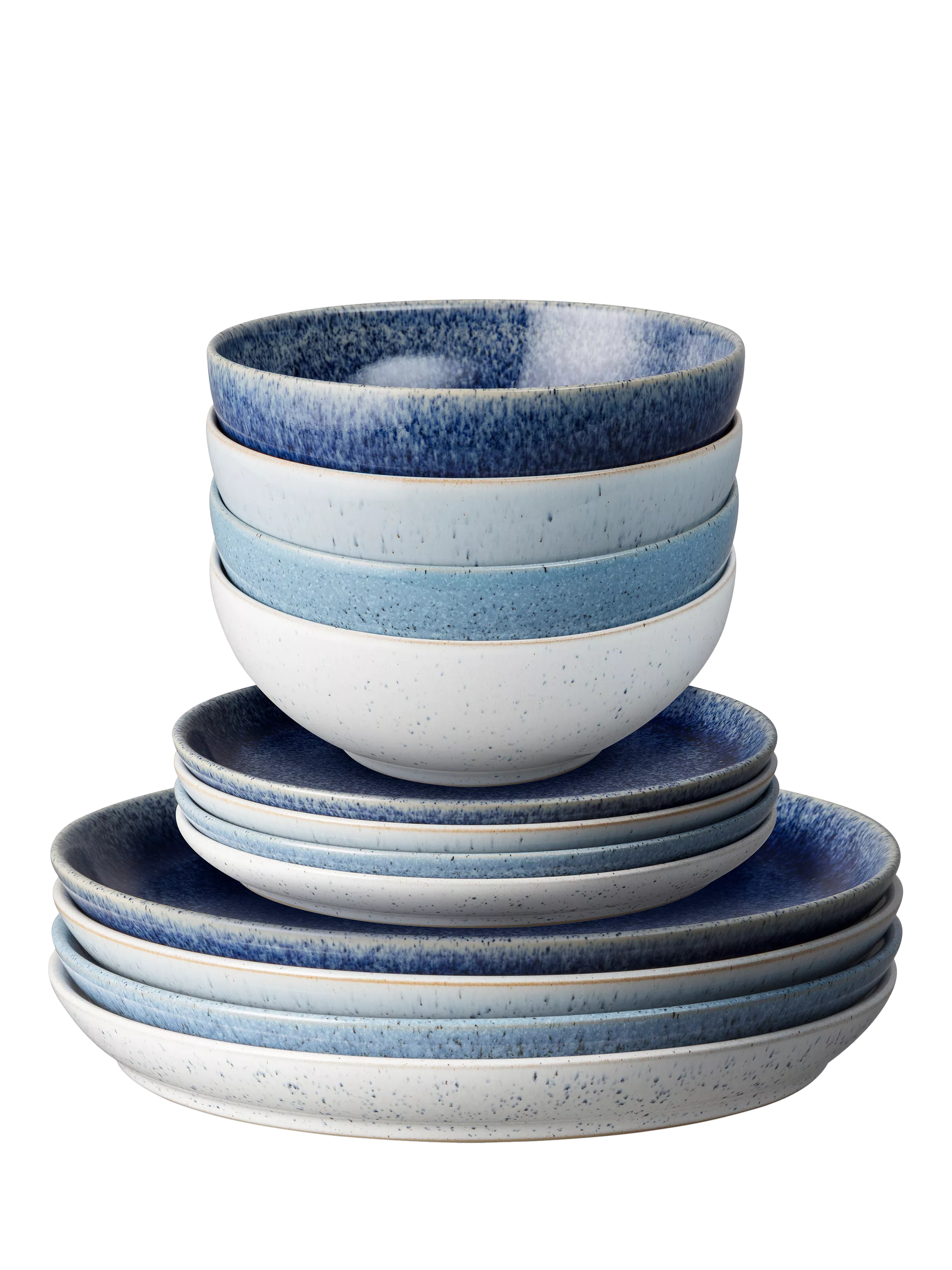 DenbyStudio Blue Stoneware Dinnerware Set, 12 Piece