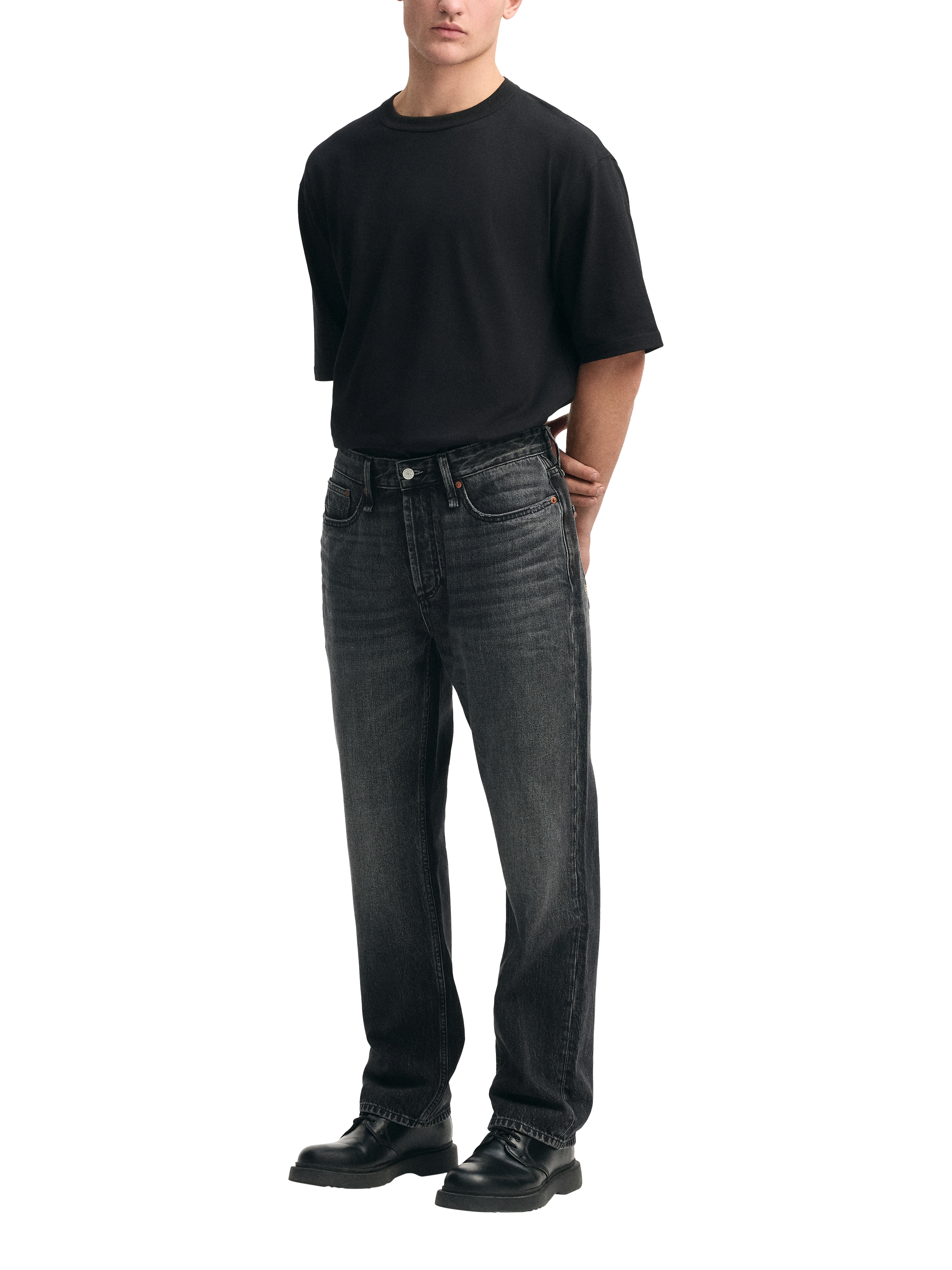 The Dagger is a signature relaxed fit. These jeans are cut from 3x1 rigid black denim and are finished with a classic stone wash for a softly worn look.