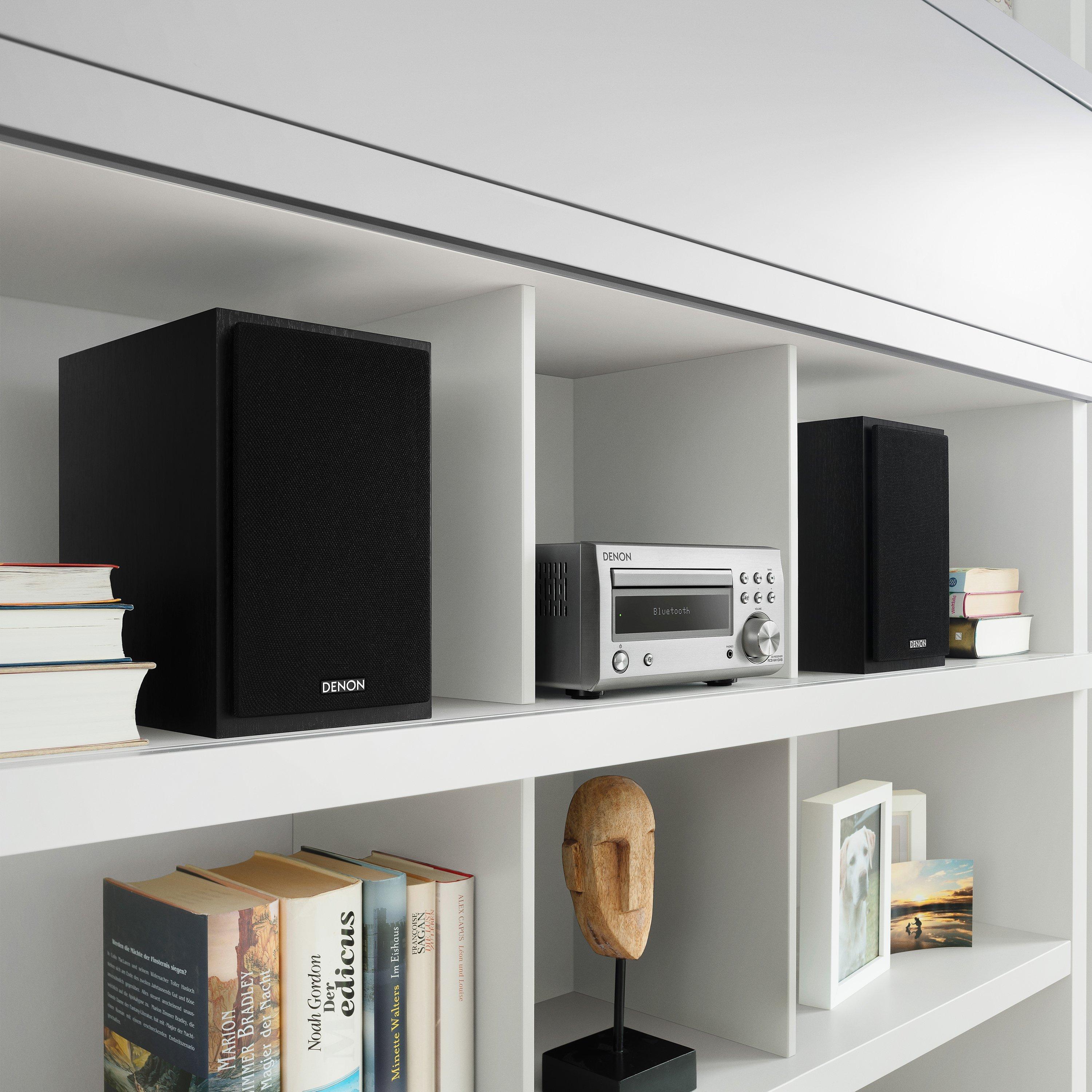 The internal tech has been redesigned and refined to maximise performance. Audio circuitry is as simple and short as possible to minimize any possible distortion and deliver sound that is utterly faithful to the original source. Triple Noise Reduction Design technology eliminates three potential sources of interference for a breathtaking purity of signal across two 30W channels. Despite commanding superlative, large-scale audio, the D-M41DAB's sleek and compact design fits easily in any room or on a bookshelf, and is matched with European Sound Tuned speakers.