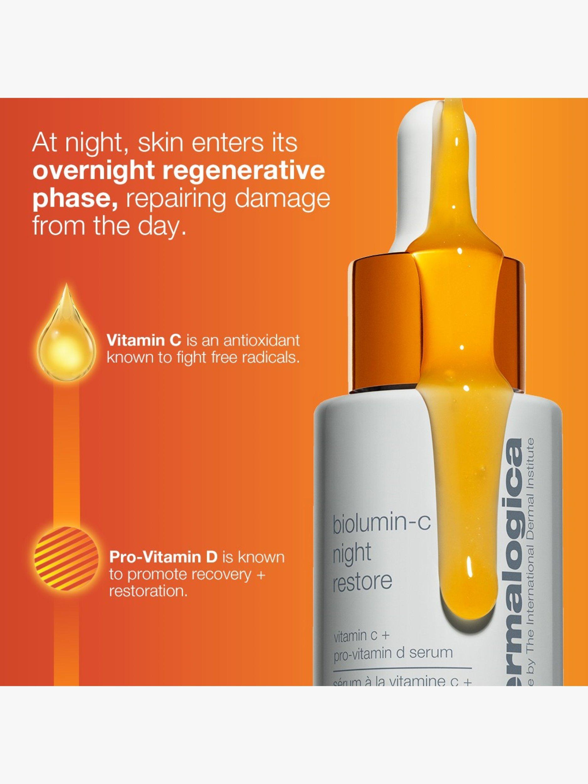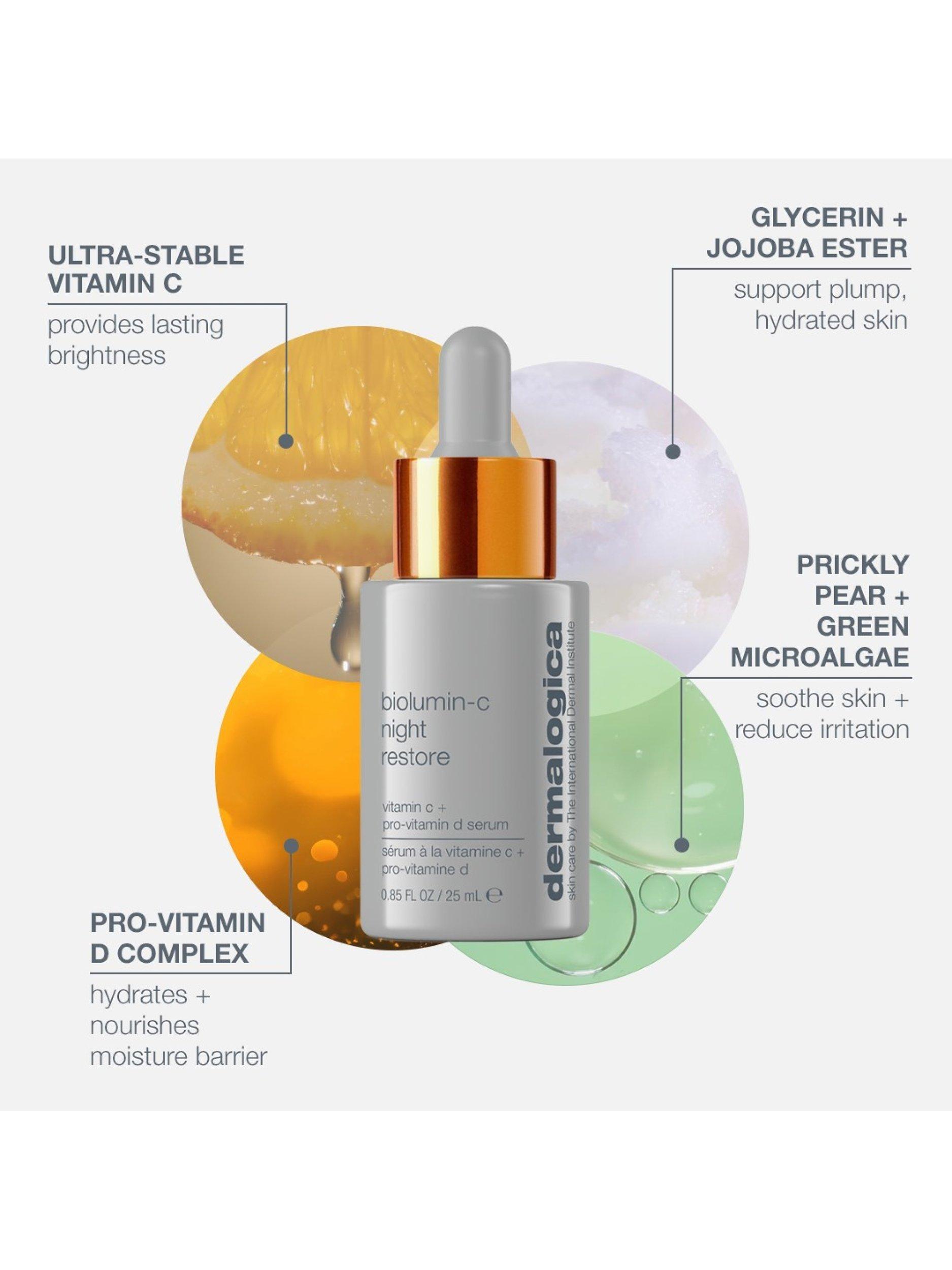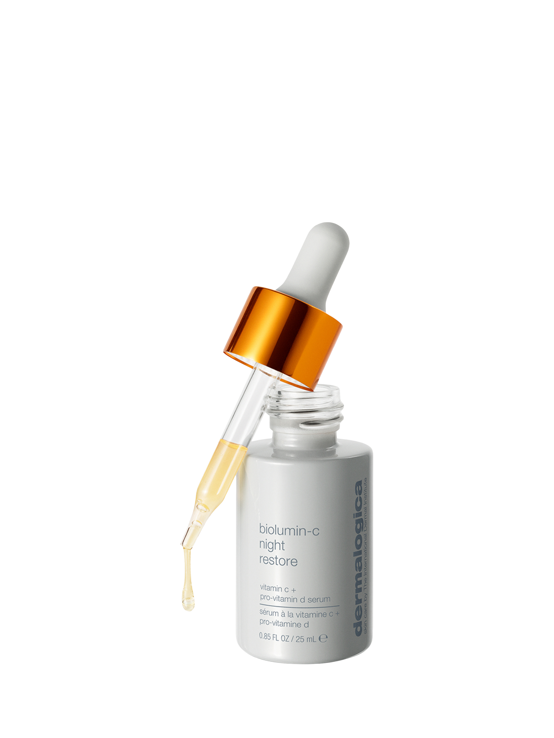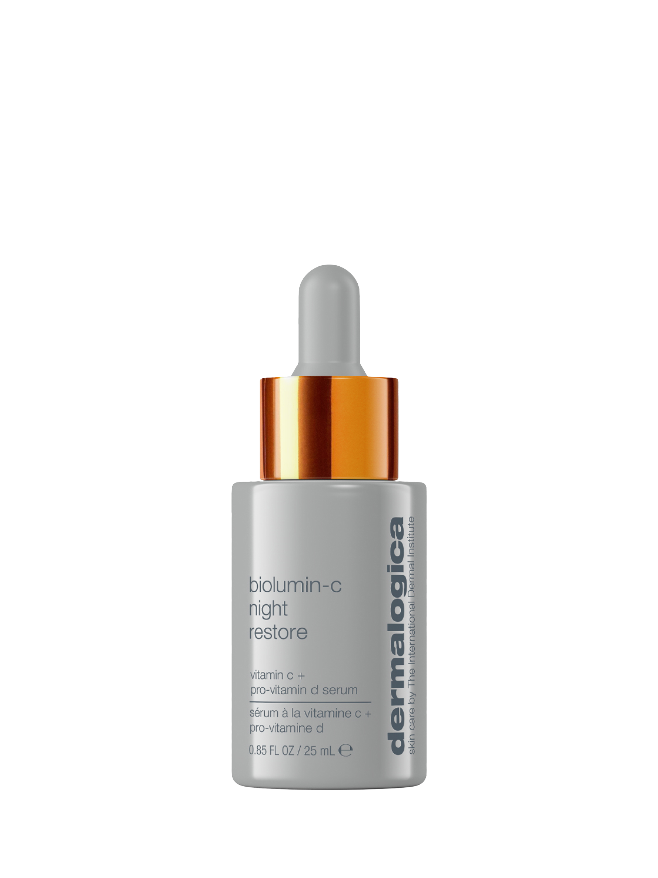 An overnight serum with ultra-stable Vitamin C and Pro-Vitamin D Complex helps restore the moisture barrier for long-lasting radiance, hydration, and improved tone.