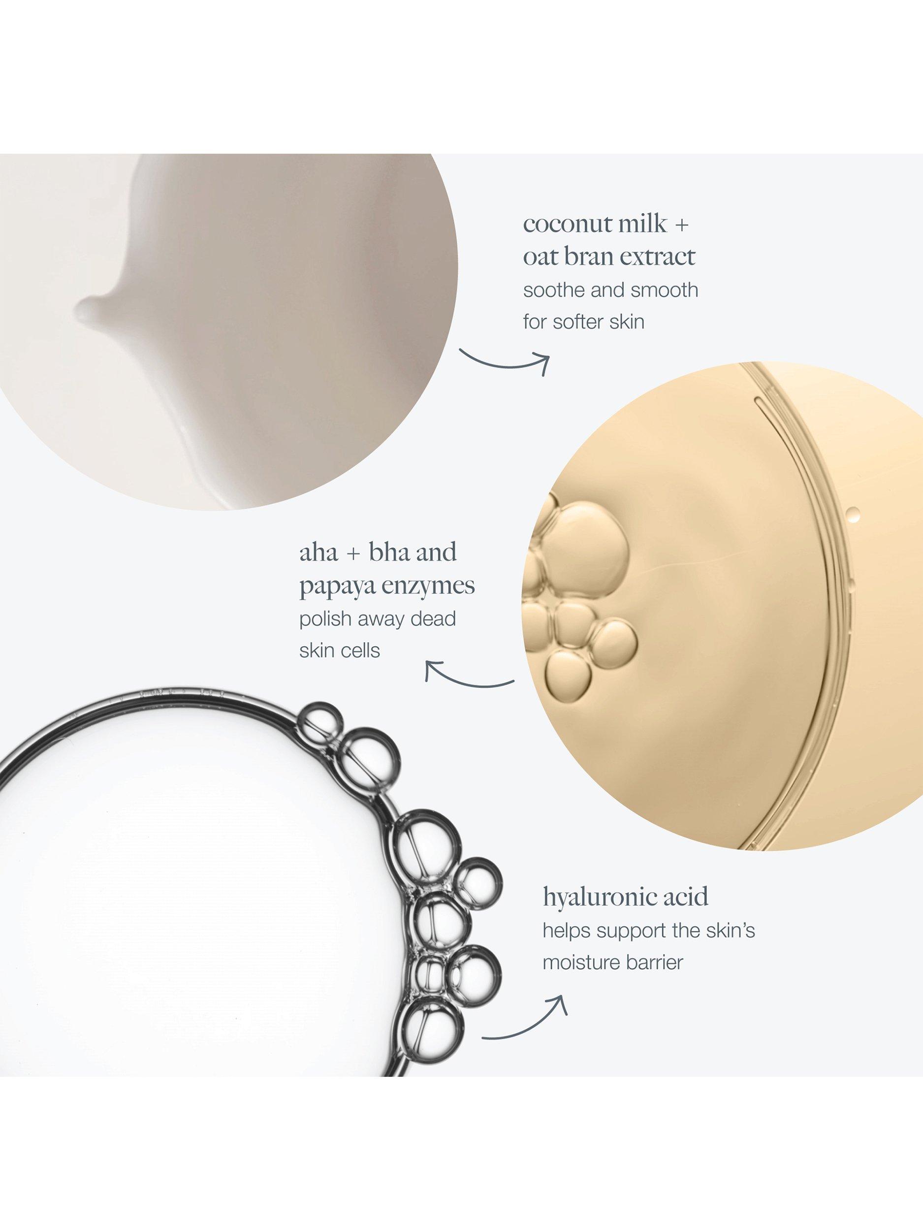 Gently polishes to reveal smoother, more vibrant skin, replenishes and restores skin's moisture barrier, and relieves skin with calming and soothing ingredients.
