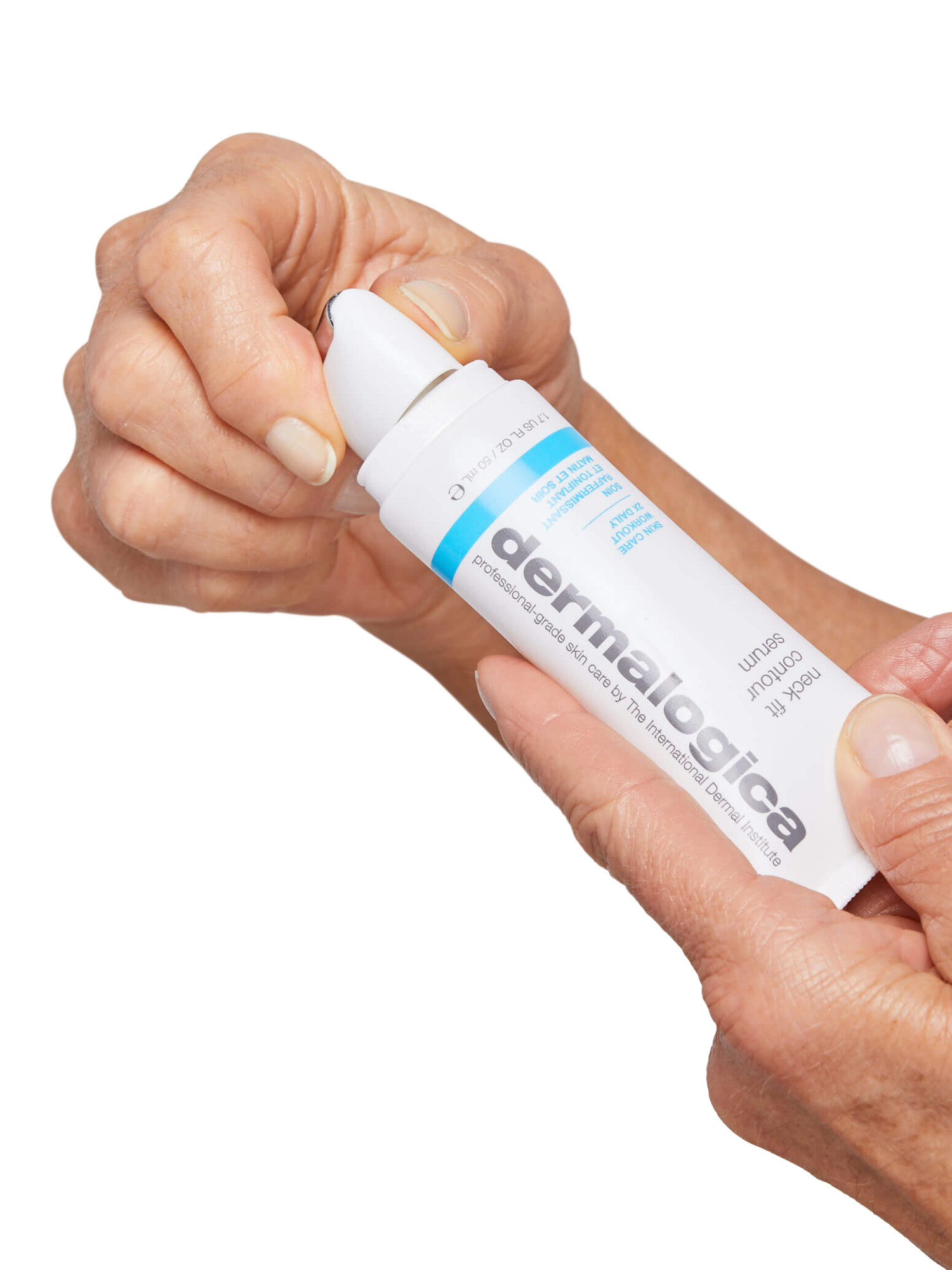 How to use: Turn applicator ON. Tilt chin up and roll applicator over the entire neck, from the décolleté up to the jawline. Gently squeeze tube to dispense the serum while rolling. Return the applicator to the OFF position and continue rolling it in an upward motion over the skin to massage in the serum. Keep the chin up until serum dries. Use morning and night.