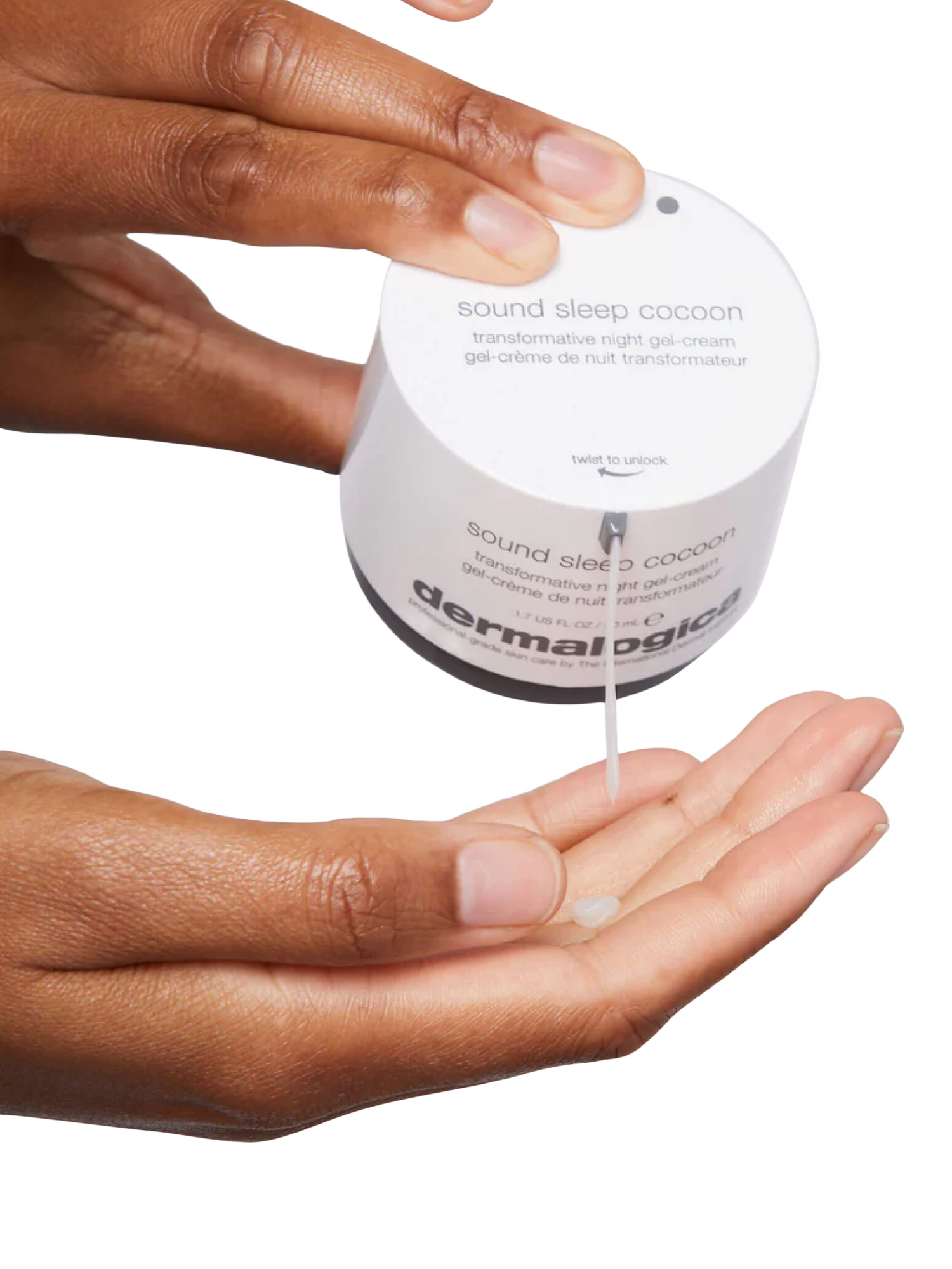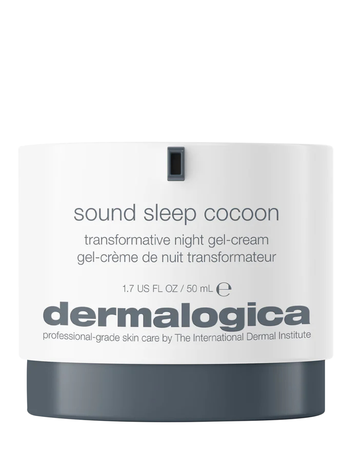 Dermalogica's Sound Sleep Cocoon is a revitalising treatment gel-cream that transforms skin overnight by optimizing nighttime skin recovery.