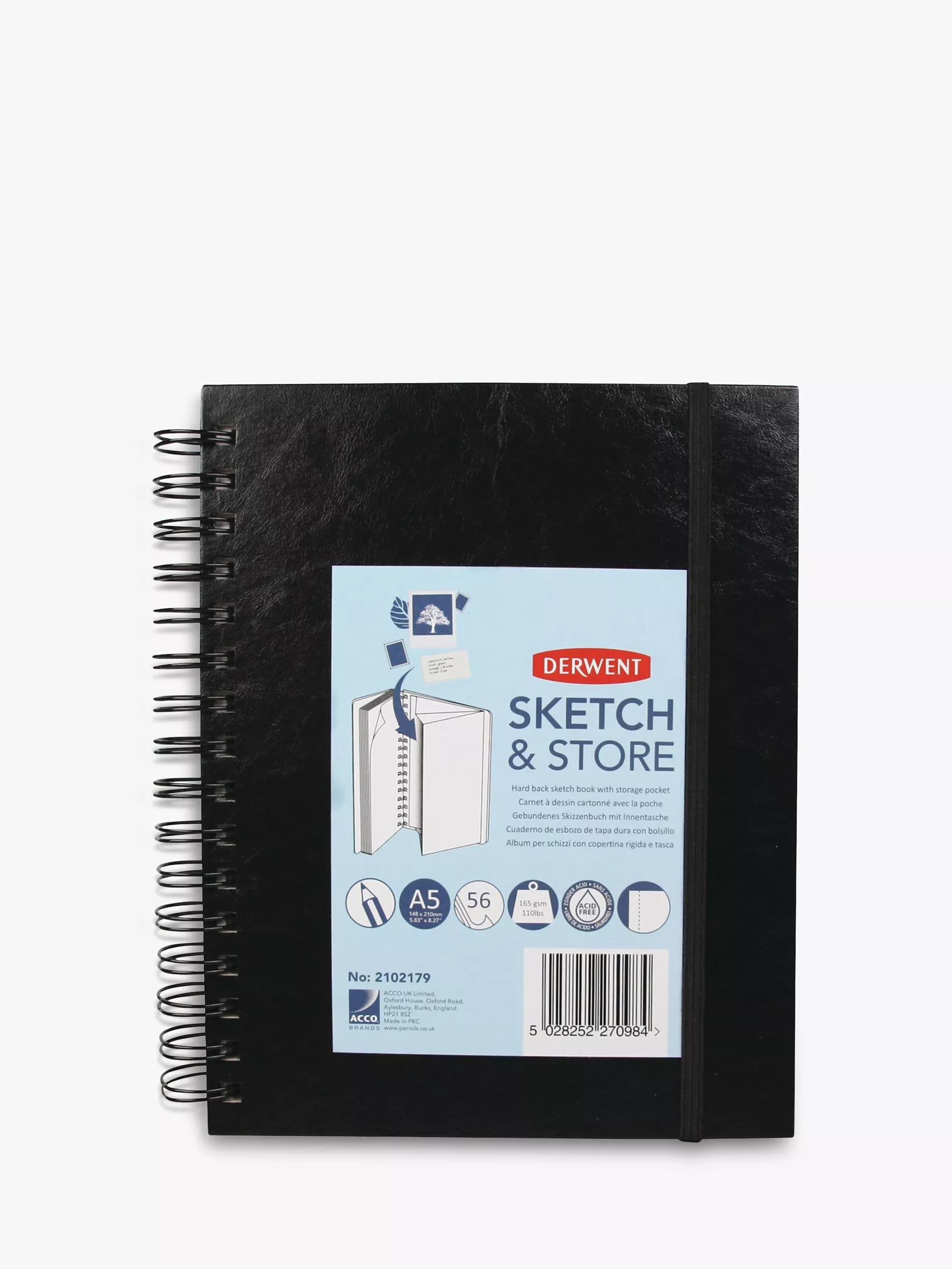 These hardback sketchbooks have wider rings to accommodate extra paper, an elastic band to keep loose sheets in place and an expanding pocket at the back to store additional items.