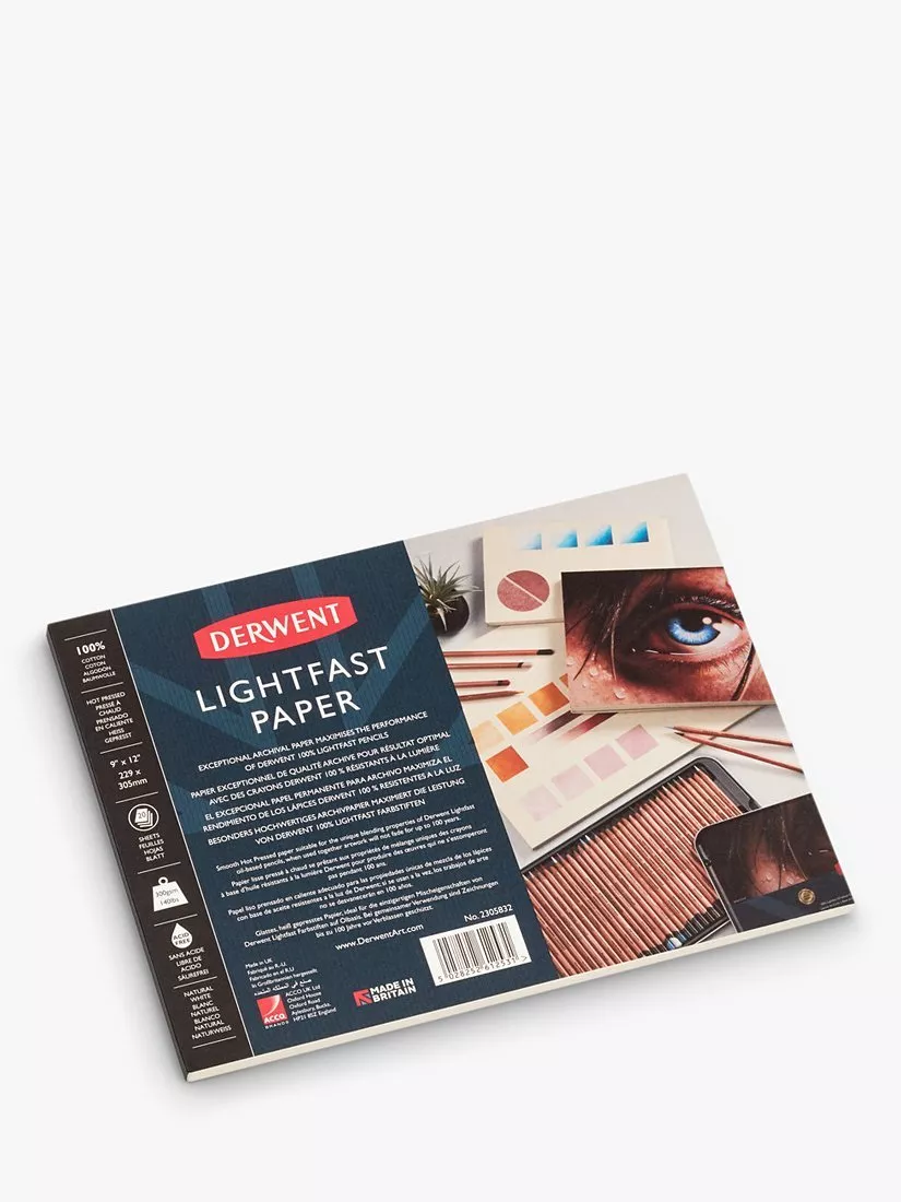 Smooth Hot Pressed paper suitable for the unique blending properties of Derwent Lightfast oil-based pencils, when used together artwork will not fade for up to 100 years.