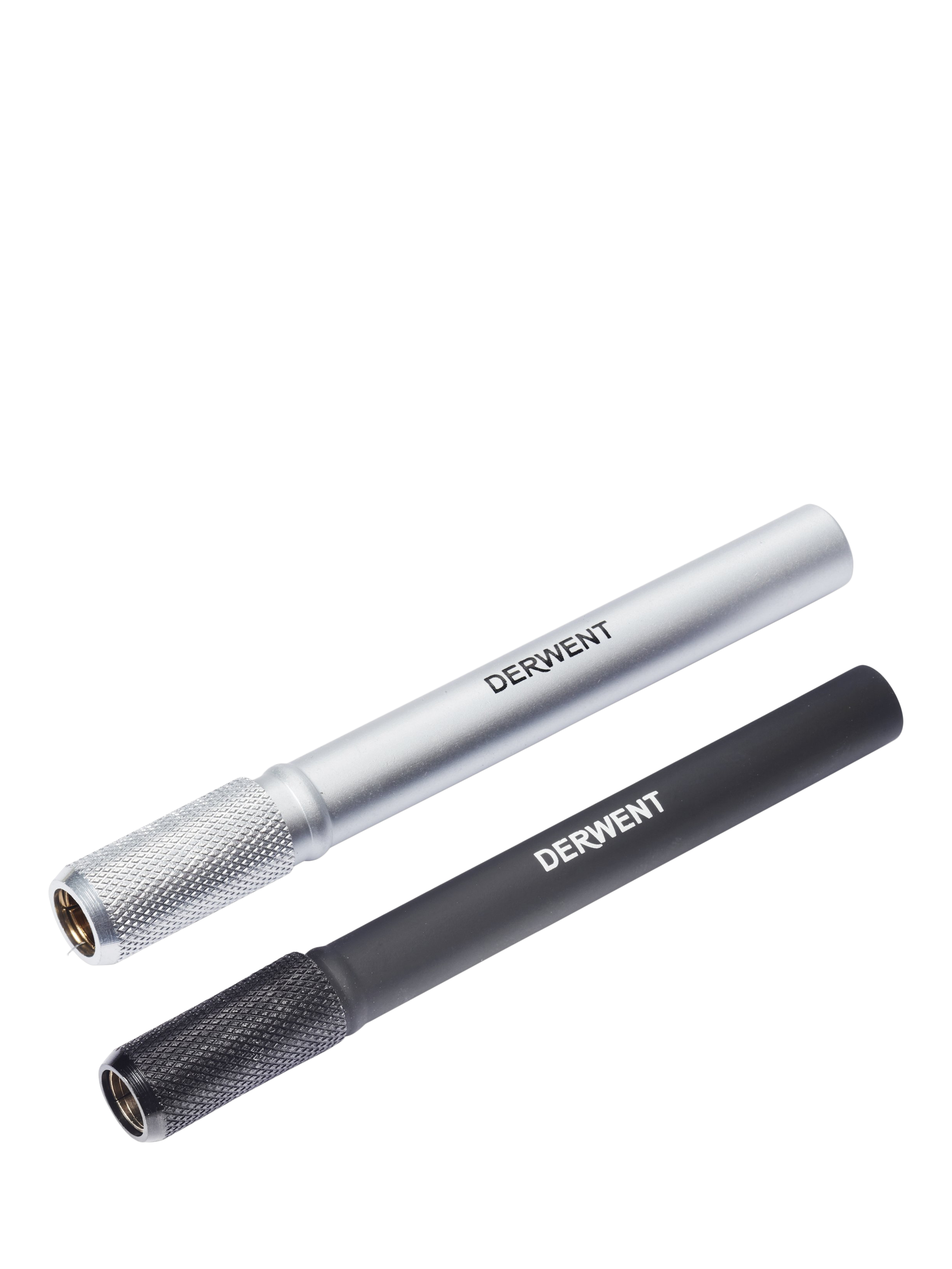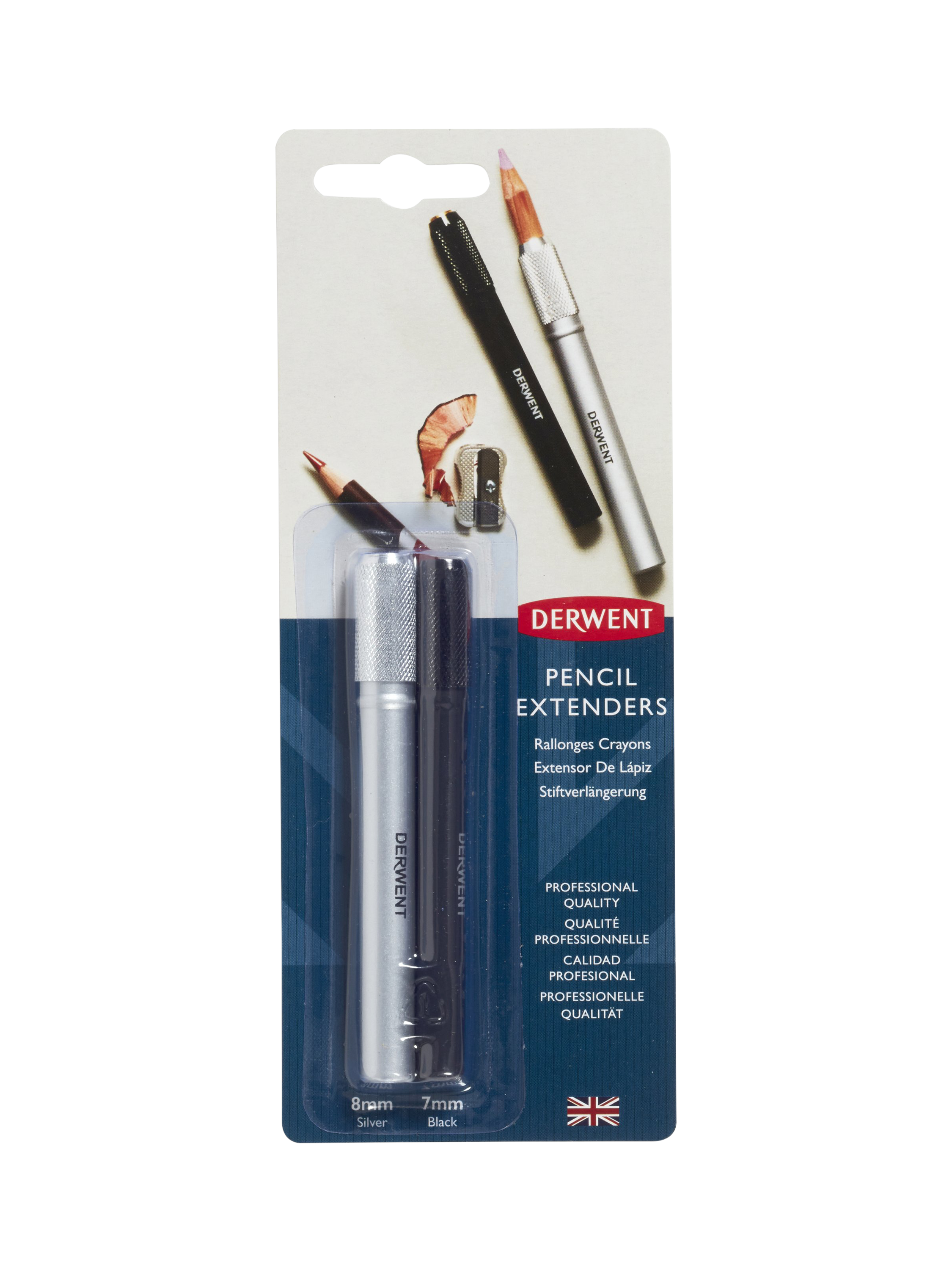 Prolong the life of your pencils with these handy extenders. The silver one fits Derwent's larger diameter pencils such as Inktense and Artists while the black one fits all their standard size pencils such as Graphic and Watercolour.