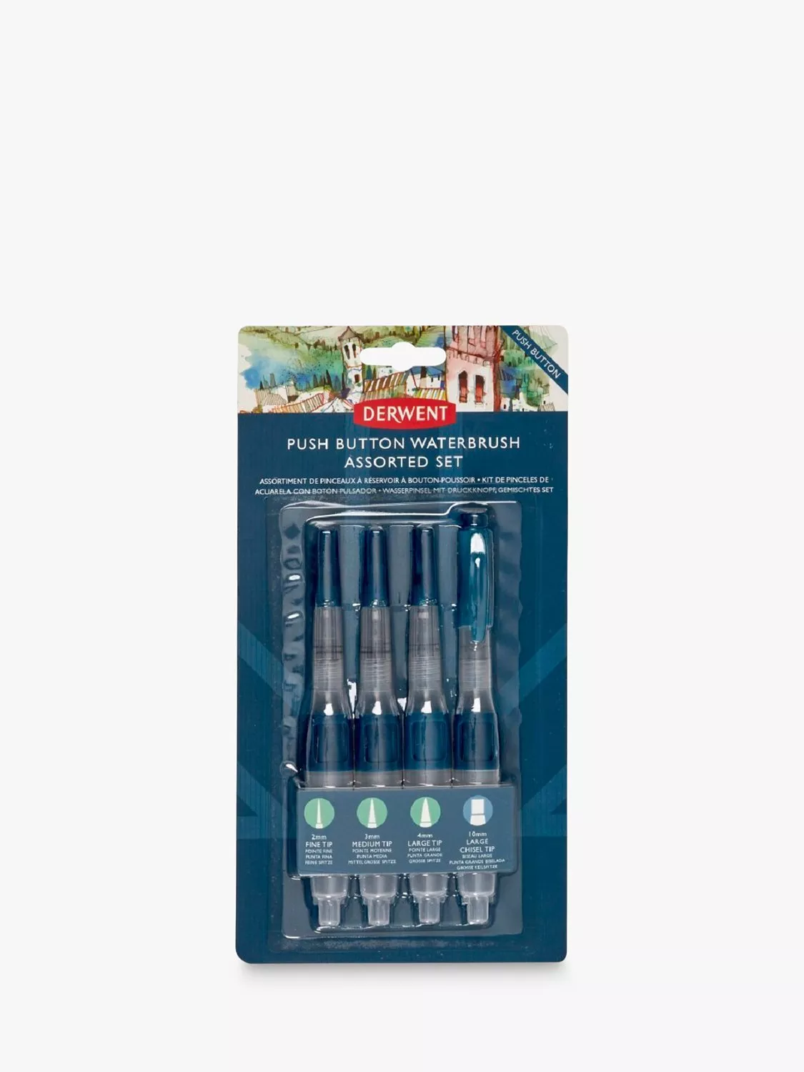 Assorted point and chisel tip water brushes, for a range of painting strokes, that are comfortable to handle and leakproof.