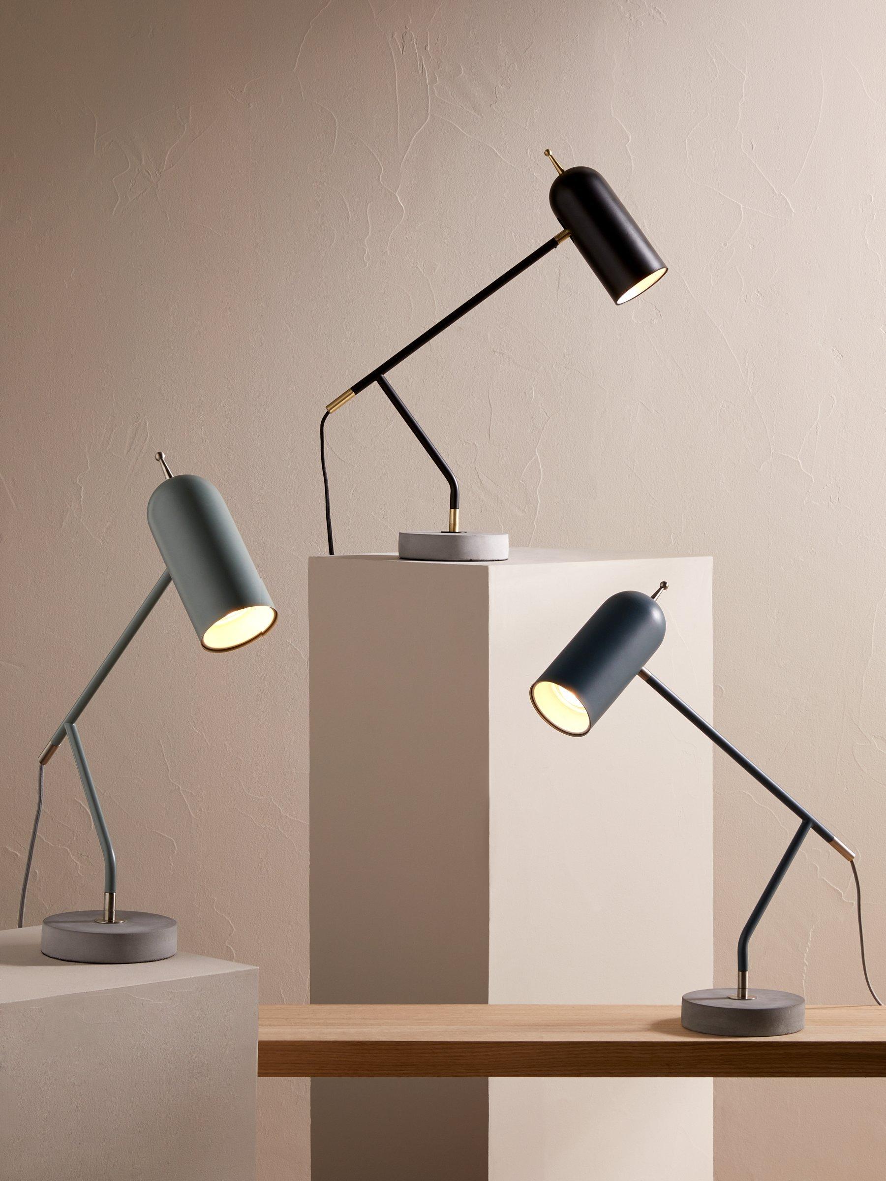 A sophisticated, slimline task lamp for your work surface, the No.045 explores material contrasts through its metal and concrete construction. Designed with brushed brass accents, its arm can be pivoted and directed to cast light exactly where you need it, while its round concrete base lends a sturdy and rustic-inspired quality.