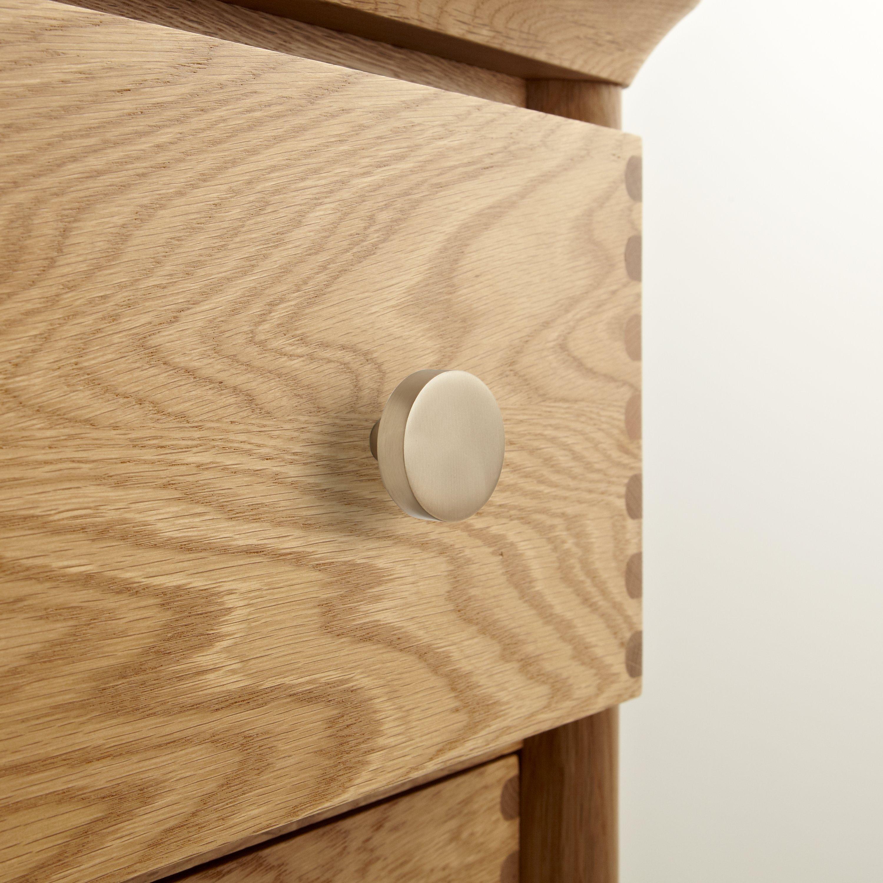 With a simple shape and subtle brushed finish, these versatile knobs can also be used as wall hooks.