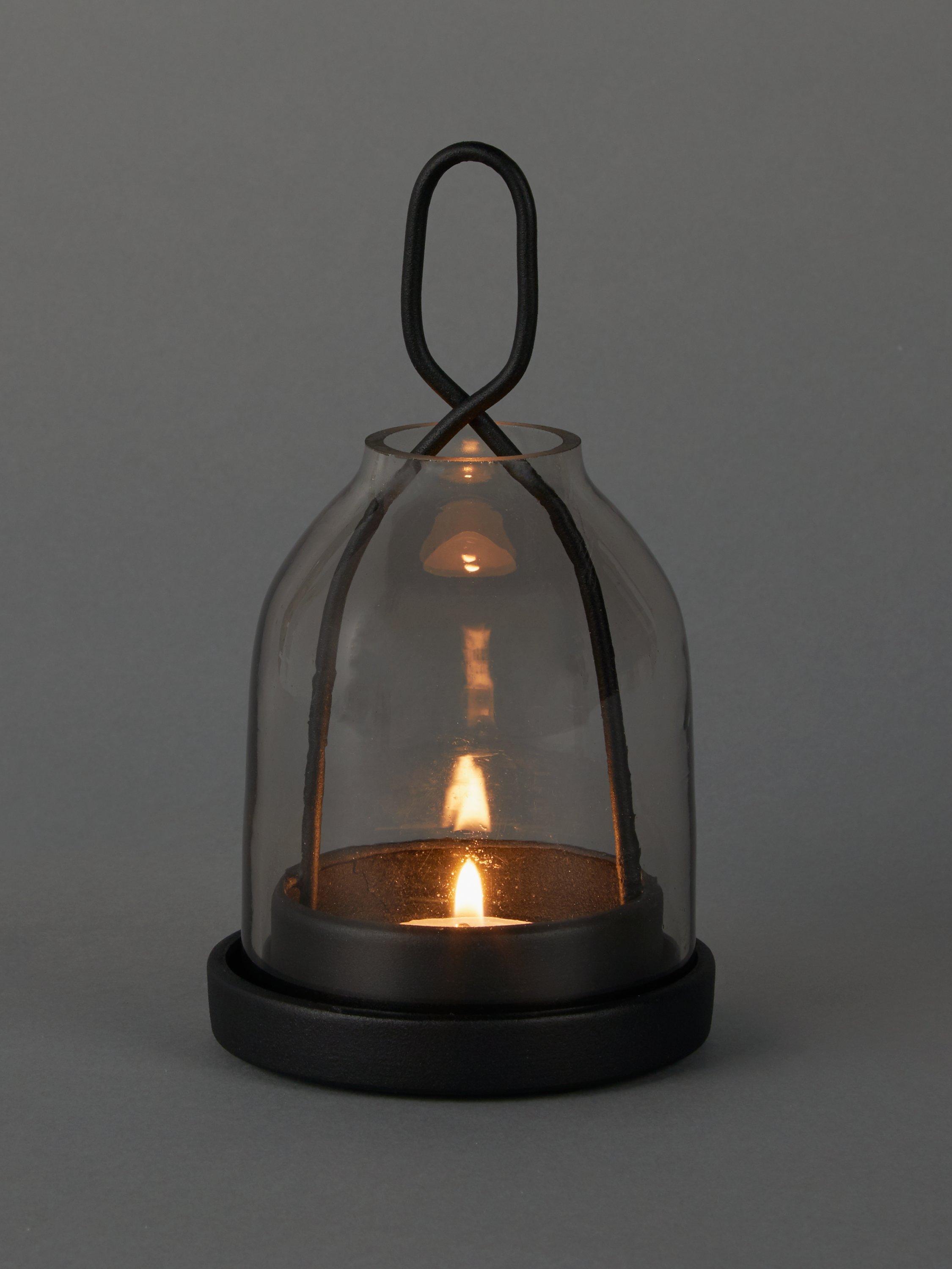 This beautiful smoke glass lantern has been crafted from iron and glass. This modern design is perfect for indoor use, use with pillar candles to create a warm and relaxing glow within your home. Place together with the other sizes or display separately for an eye catching focal point.