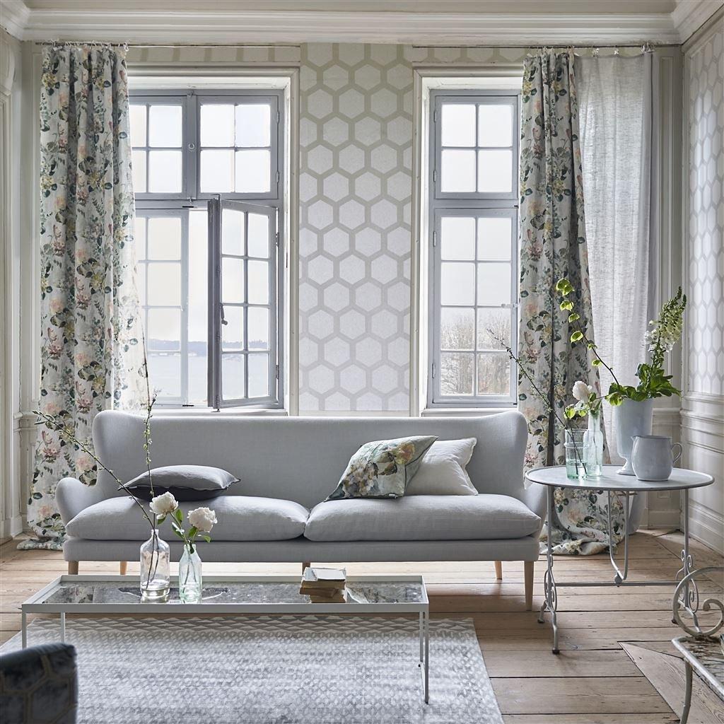 From Designers Guild, Adachi is a linen fabric featuring a digital print of painterly flowers.