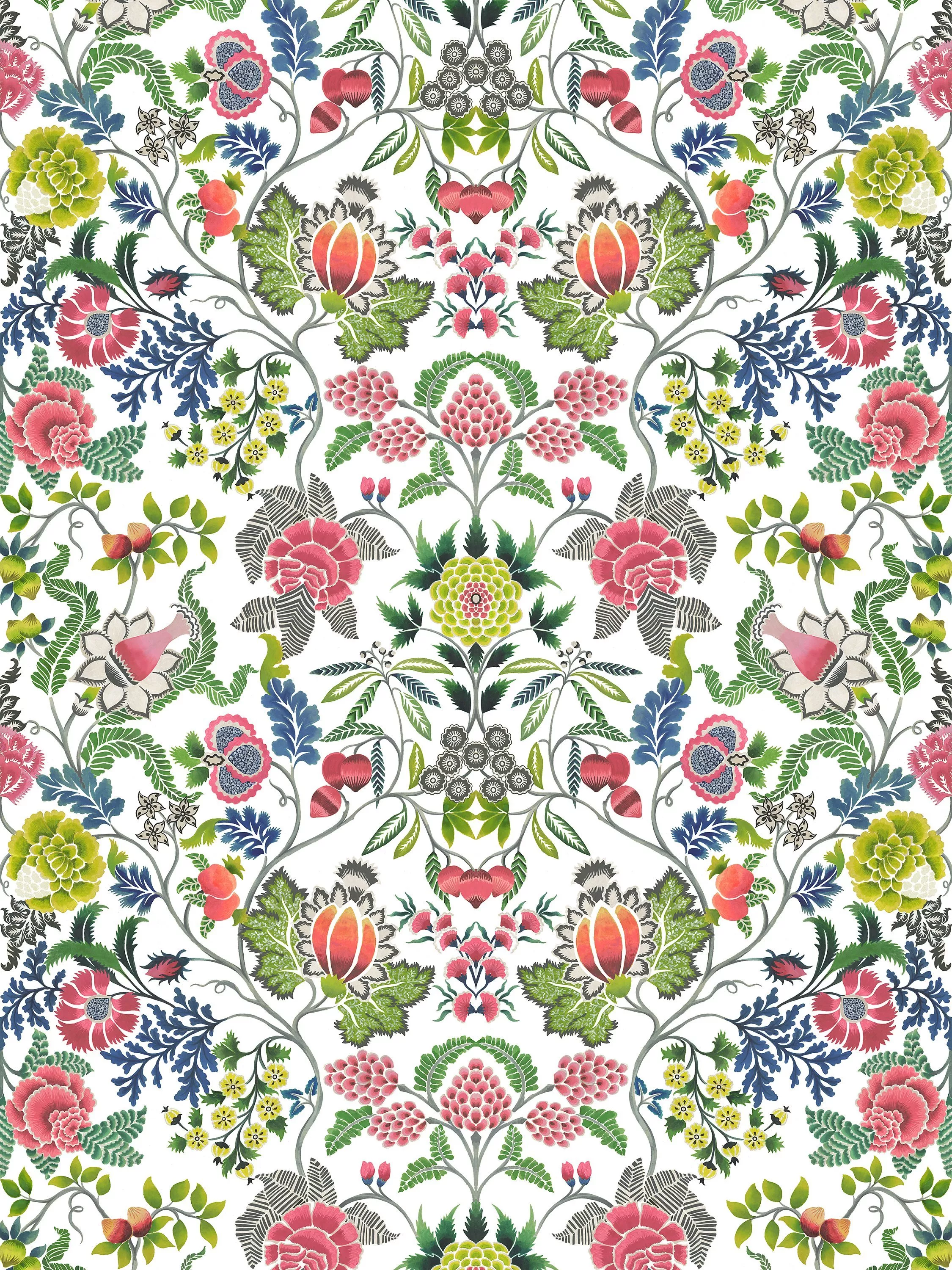 Inspired by the rich decorative brocades used in the lavish interiors popular at the time of the 1905 Salone d'Automne in Paris. This stylish, floral printed pure linen showcases finely painted flowers and foliage arranged in a cleverly mirrored form. Shaded petals and striped leaves add to it's decorative nature.