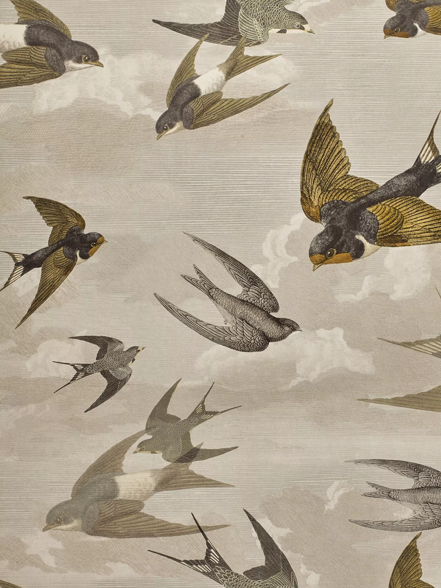 Charming and dramatic, this design with its beautifully drawn swooping swallows amidst gentle skies, is the perfect picturesque scene. Printed on a luxurious non woven ground for ease of hanging.