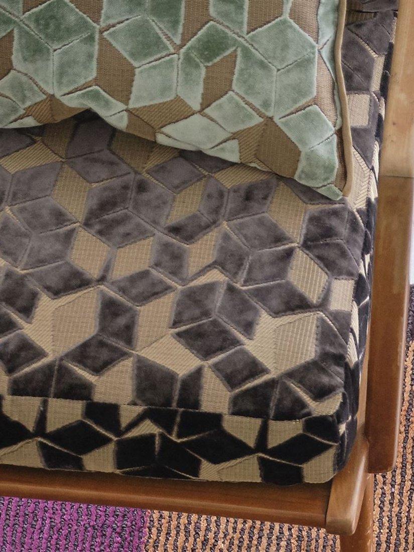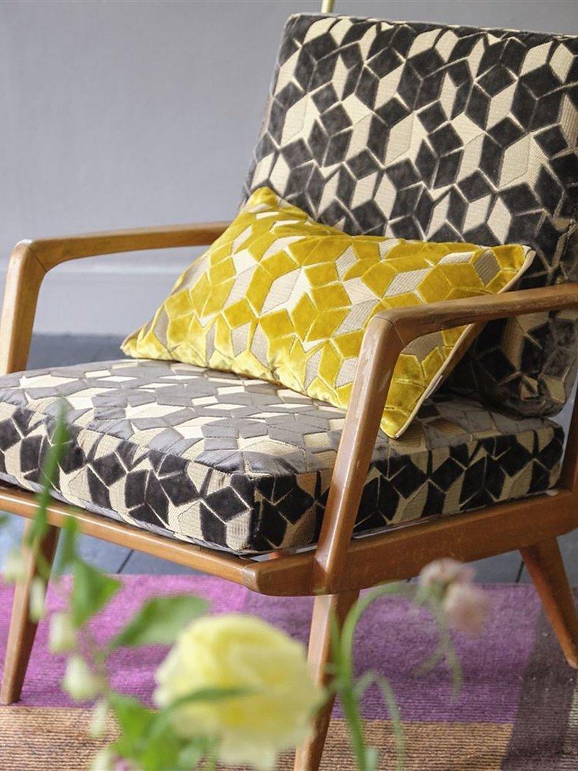 Fitzrovia is a striking fabric from Designers Guild. Metallic threads running throughout and velvet shapes create the geometric pattern that will complement contemporary interiors.