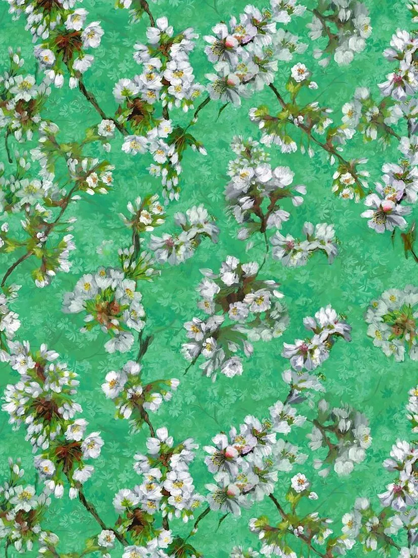 Extraordinary painterly expressions of white blossom are digitally printed onto a softly brushed pure cotton ground to create this romantic fabric from Designers Guild.