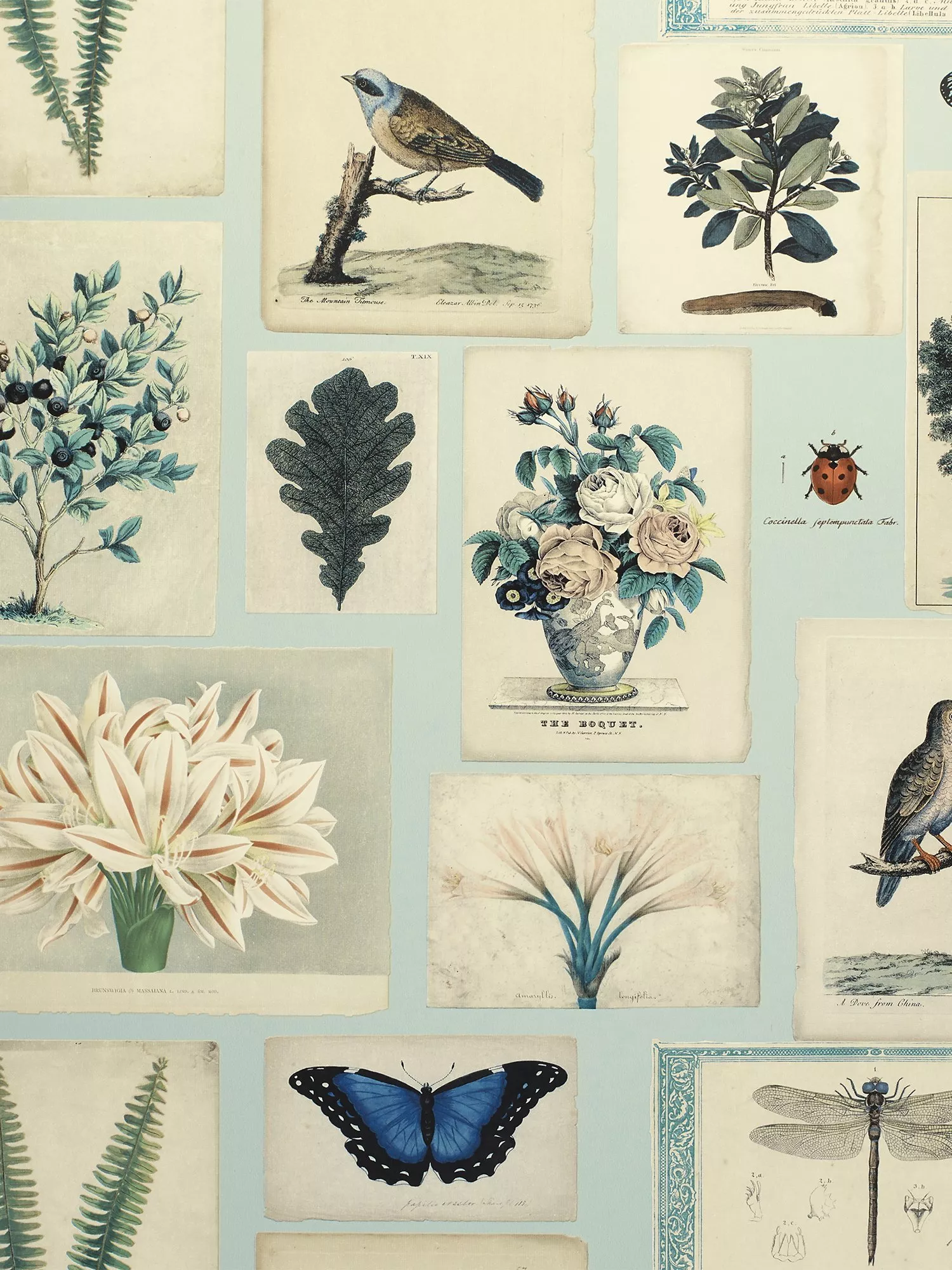 A simply stunning assemblage of intricate botanical illustrations festooned with original handwriting. This highly detailed design is printed onto a luxurious non-woven ground for ease of hanging.