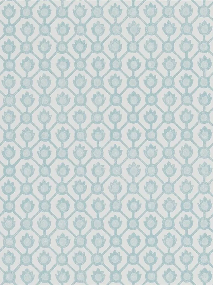 This archival print from Designers Guild features a small all-over stamped motif in two tones of colour. This graphic wallpaper is traditionally surface printed onto a subtly textured non-woven ground to emulate the hand-stamped feel of the original design.