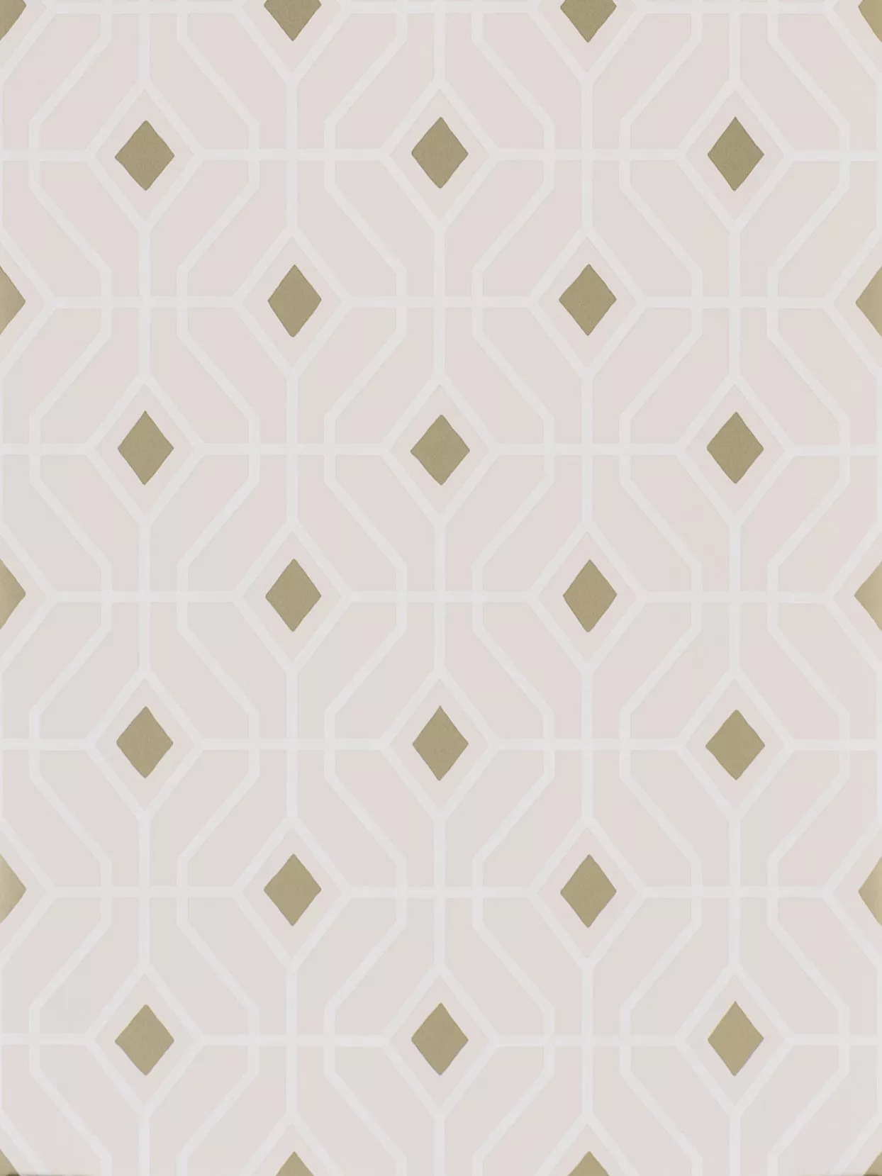 A small scale, lattice inspired wallpaper design. Elegant interlocking lines in a classical trellis formation but with a modern feel. Highlighted with metallic centres, this stylish, graphic wallpaper design is printed onto a smooth non-woven ground for ease of hanging in any interior scheme.