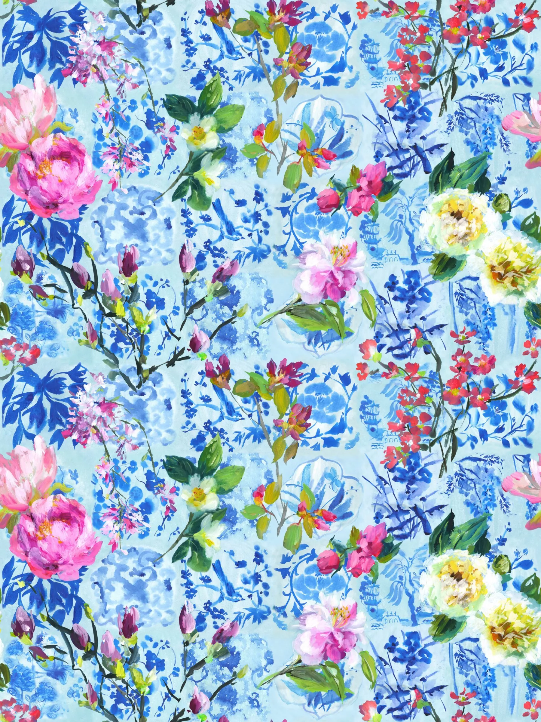 Create a statement on your walls with this digitally printed wallpaper design. Inspired by the timeless beauty and intense pigments of Majolica ceramics, this beautiful floral wallpaper design features a wonderfully detailed tiled backdrop and a cascade of flowers.
