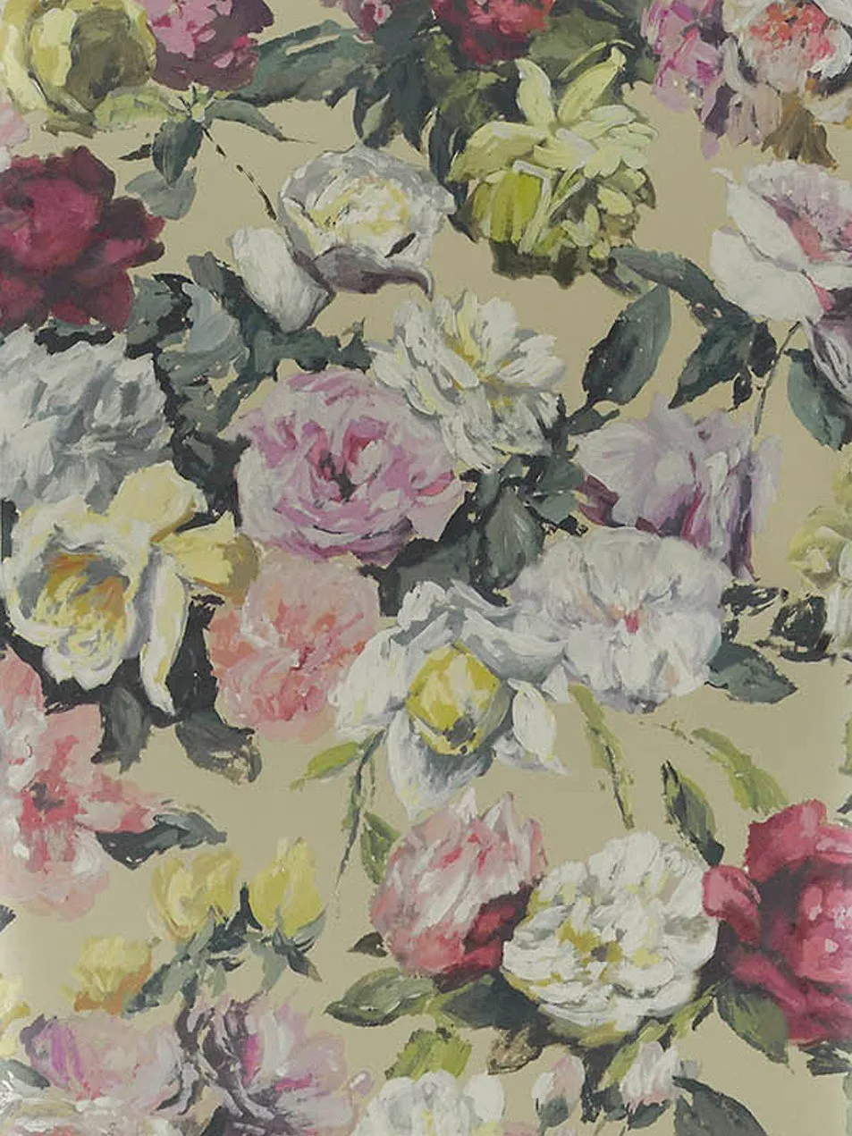 A beautiful, digitally printed wallpaper with fabulous, hand-painted displays of romantic blooms.