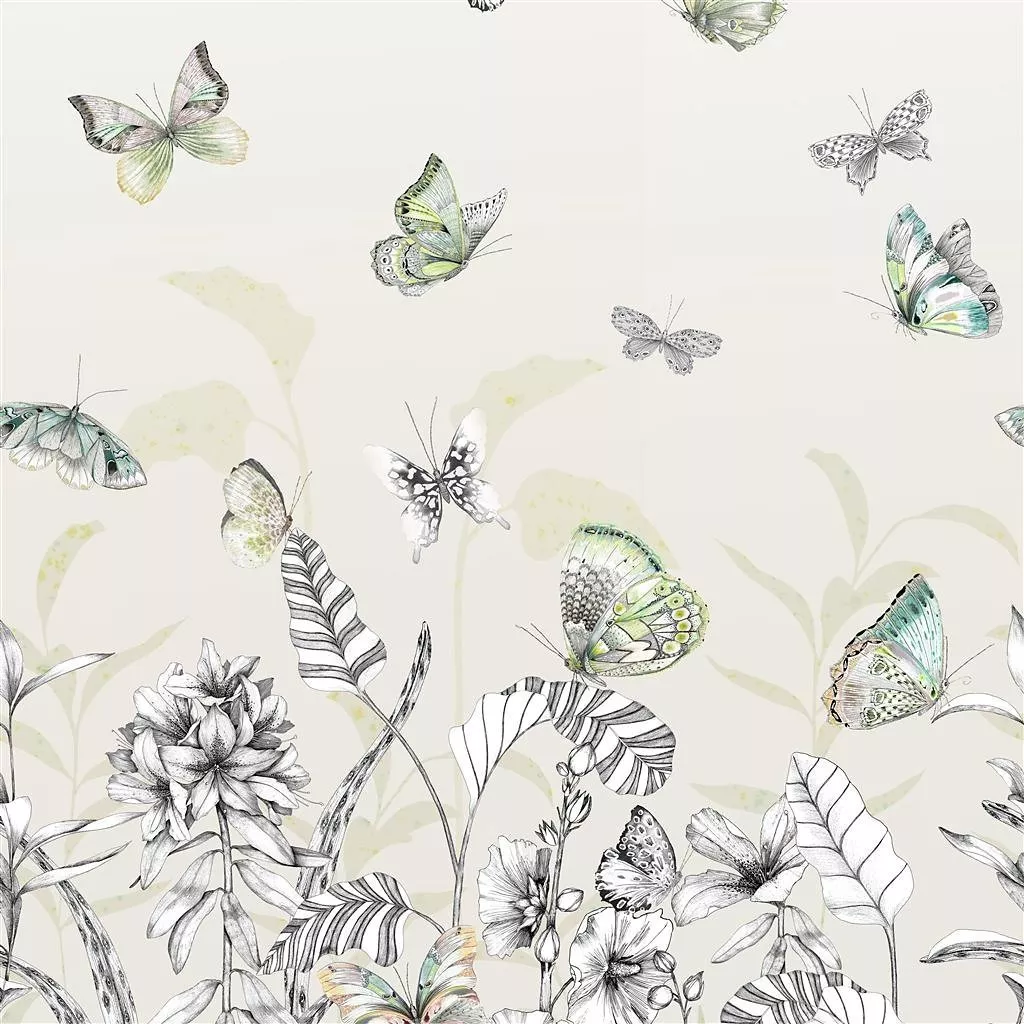 A beautiful scene of hand drawn butterflies, florals and foilage with sublime flashes of watercolour.