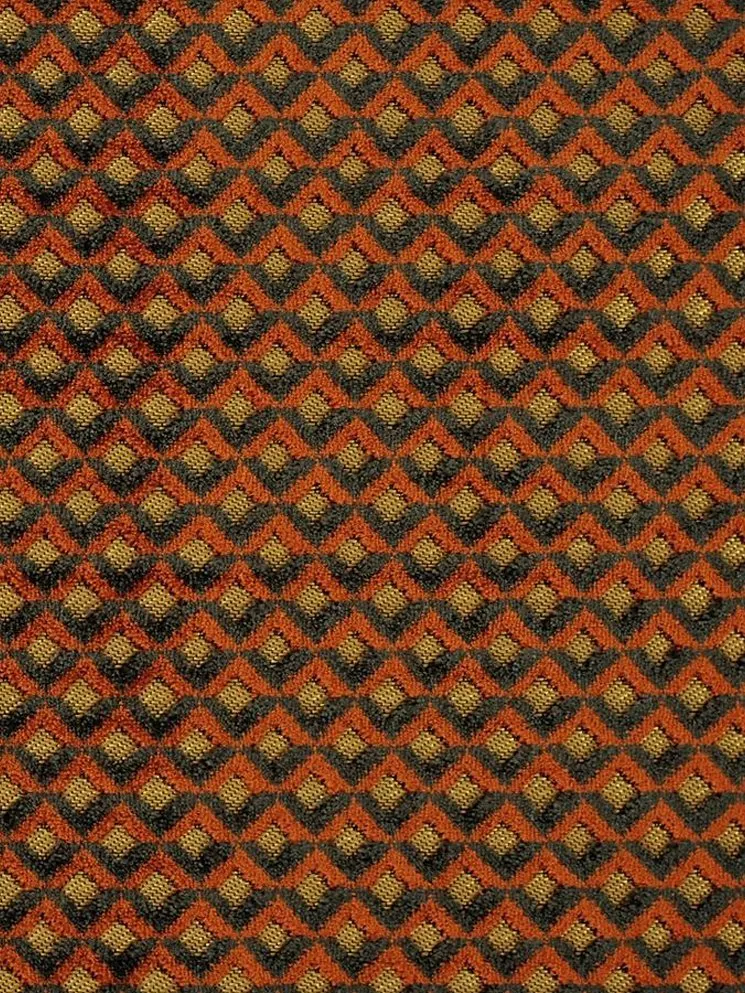 A three dimensional trellis effect pattern woven above a metallic ground.