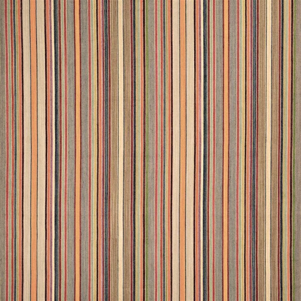 A multi-coloured woven stripe with rich texture, woven with cotton and jute on hand guided looms for a unique texture